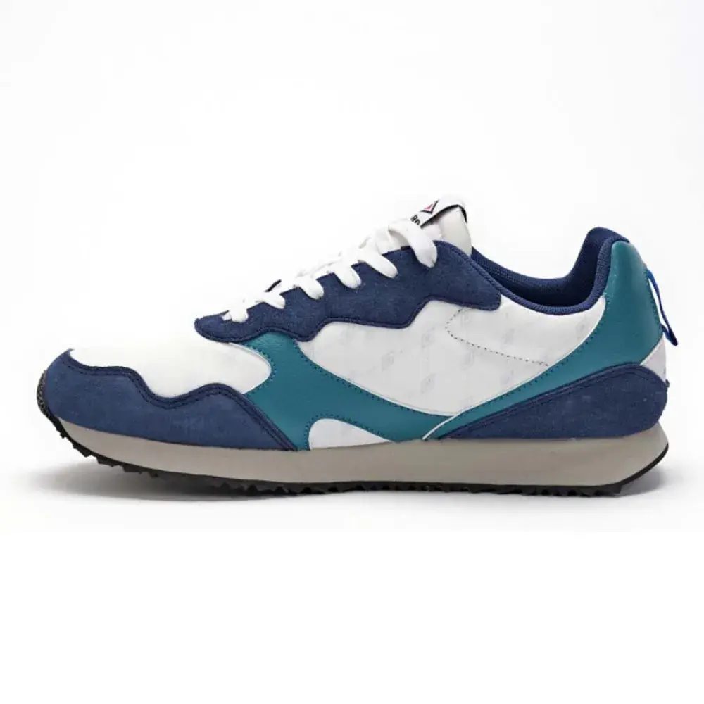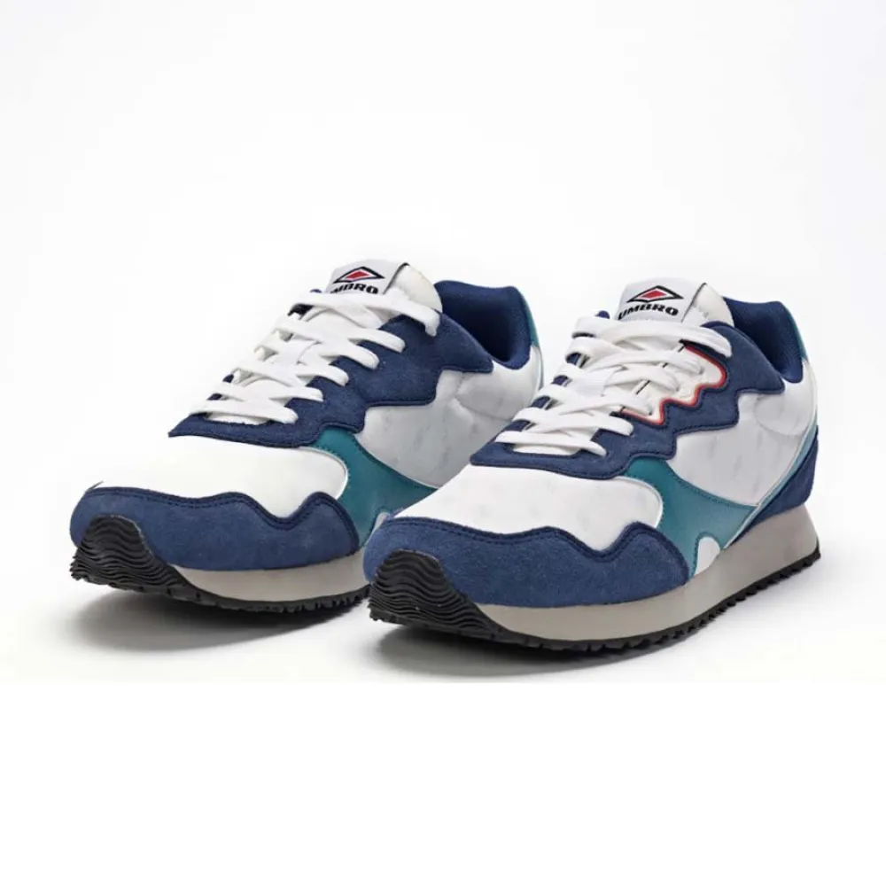 Кроссовки UMBRO Heritage Runner II — стильная и спортивная обувь для мужчин. Классический белый цвет с яркими деталями цветов «Кетцаль-зелёный», «Эстейт-синий» и «Хай-Риск-красный» делает эти кроссовки ярким акцентом. Лёгкая конструкция и амортизирующая подошва обеспечивают удобную посадку, делая их идеальными для повседневной носки или для занятий в спортзале. Независимо от того, следите ли вы за модой или увлекаетесь спортом, эти кроссовки обязательно добавят яркости вашему образу.
