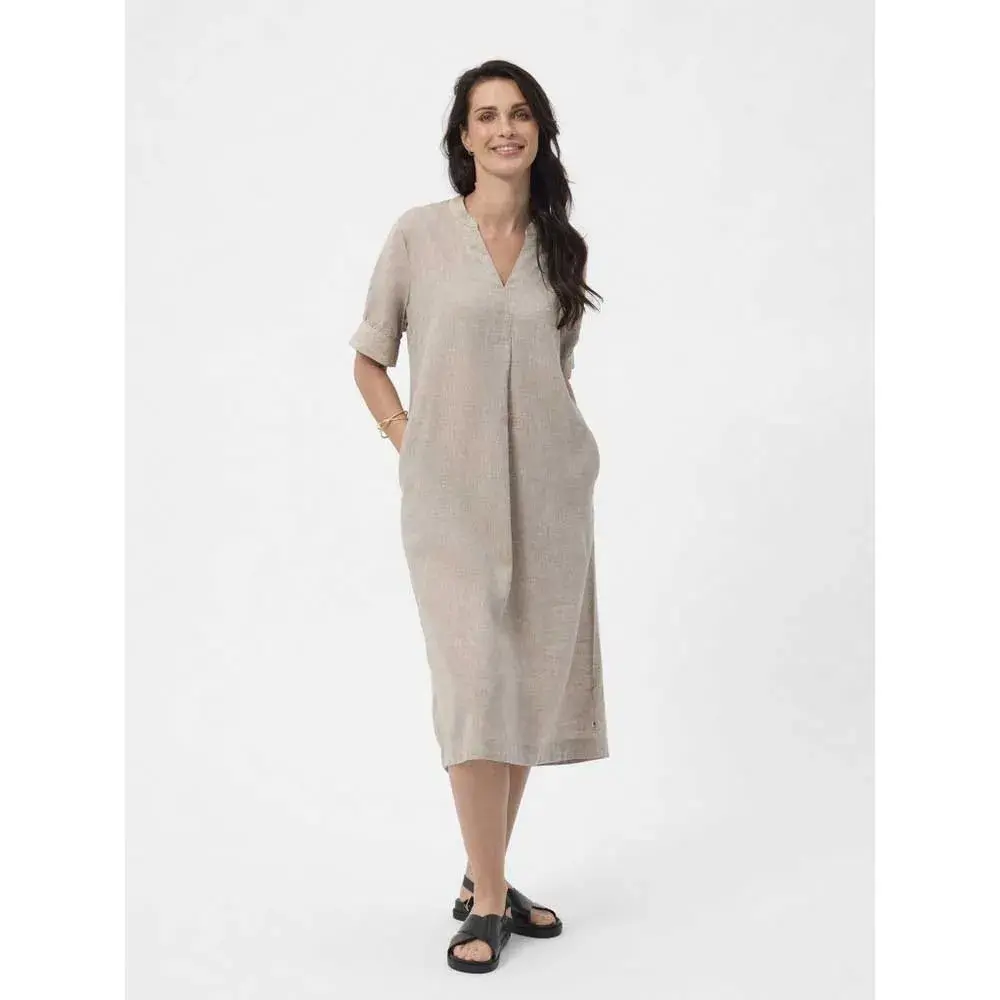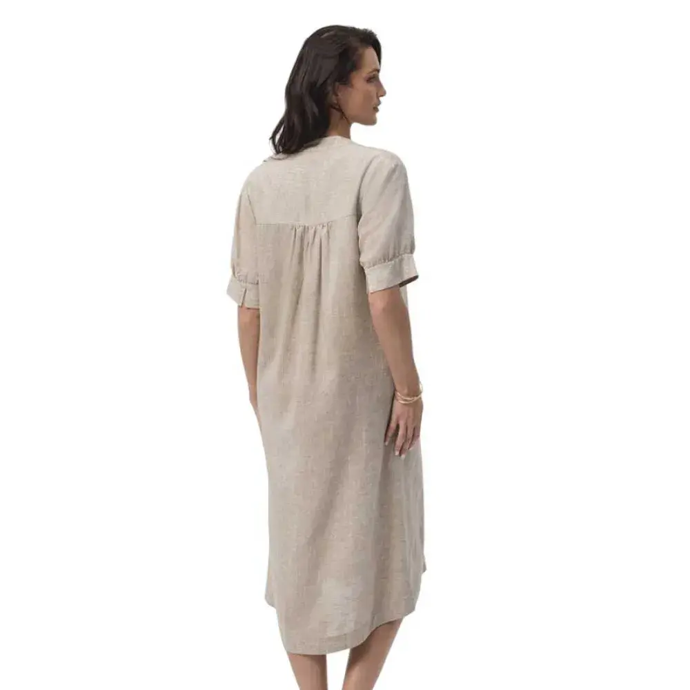 Это платье, изготовленное из высококачественной, дышащей льняной ткани, является настоящей роскошью. Натуральные свойства льна делают его идеальным выбором для теплой погоды, поскольку он сохраняет прохладу и комфорт в течение всего дня. Его характерная текстура добавляет нотку органичной, сдержанной элегантности, которая становится только мягче и красивее с каждой одеждой. Изысканная длина миди грациозно опускается ниже колена, предлагая шикарный и современный вид, одновременно сдержанный и стильный. Простой, однотонный дизайн делает это платье невероятно универсальным предметом гардероба, служащим чистым холстом для вашего личного стиля. Сочетайте его с кожаными сандалиями и плетеной сумкой-тоут для создания непринужденного дневного образа или дополните его эспадрильями на каблуках и эффектными украшениями для ужина или особого мероприятия.