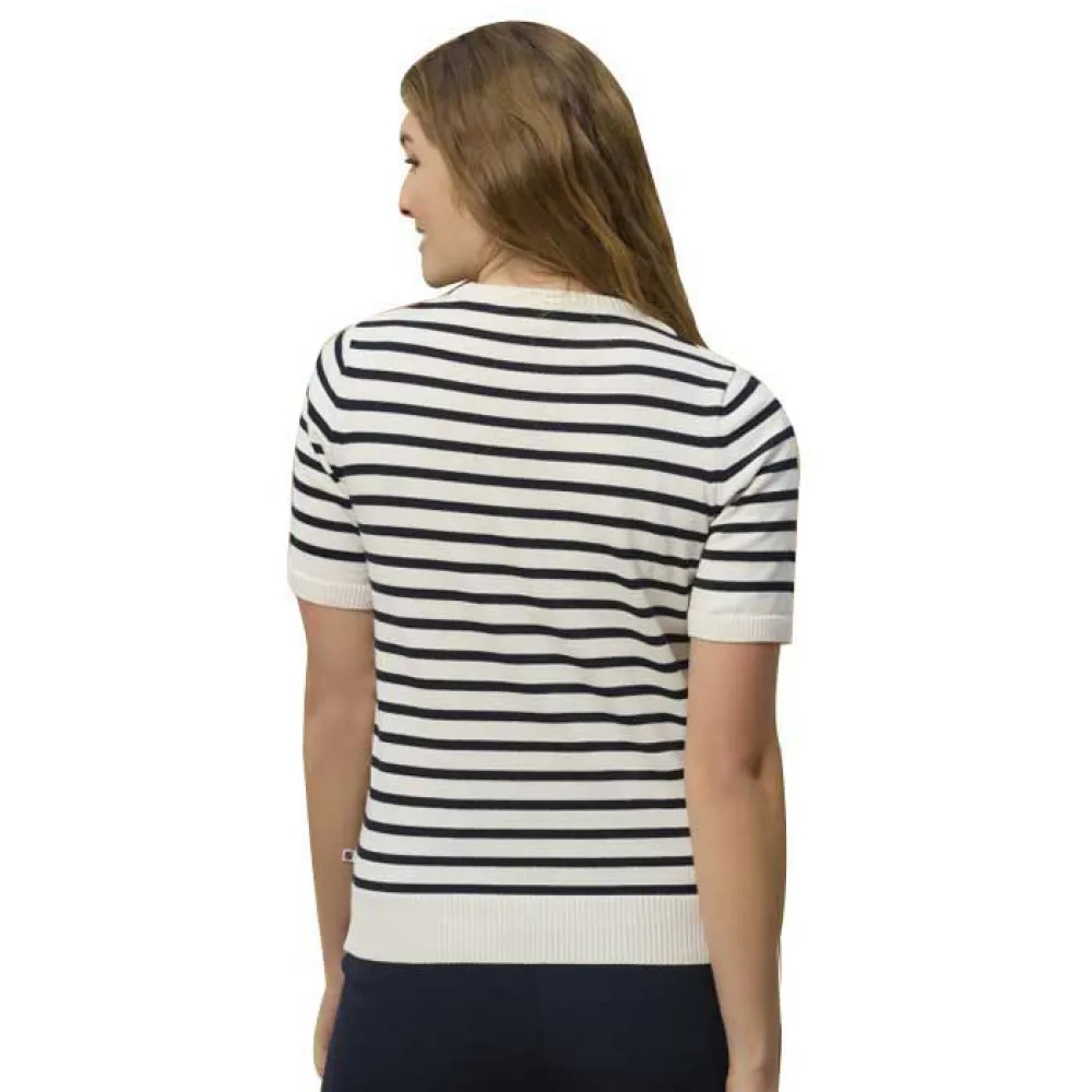 Футболка Aimee с коротким рукавом и круглым вырезом в полоску бежевого цвета — стильное и универсальное дополнение к гардеробу любой женщины. Изготовленная из высококачественных материалов, эта футболка мягкая и удобная в носке в течение всего дня. Круглый вырез и короткие рукава делают её классической и удобной вещью, которую можно носить как с нарядным, так и с повседневным образом. Узор в полоску бежевого цвета добавляет женственности и изысканности в общий образ. Эта футболка — must-have для каждой модницы, будь то с джинсами для повседневной прогулки или с юбкой для более официального мероприятия.
