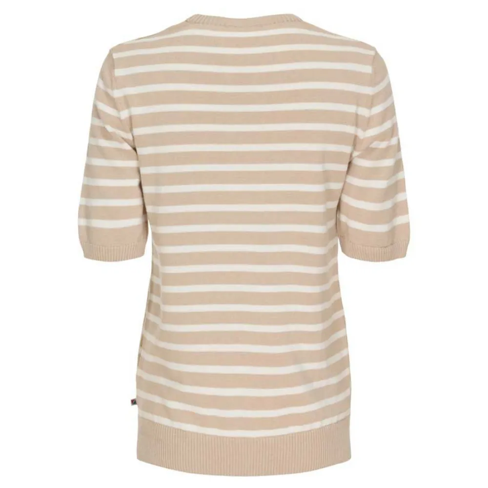 Футболка с круглым вырезом и коротким рукавом REDGREEN Aimee в полоску песочного цвета станет стильным дополнением к гардеробу любой женщины. Изготовленная из высококачественных материалов, эта футболка обеспечит комфорт и долговечность. Рисунок в полоску песочного цвета добавит легкую изысканность классическому дизайну с круглым вырезом.