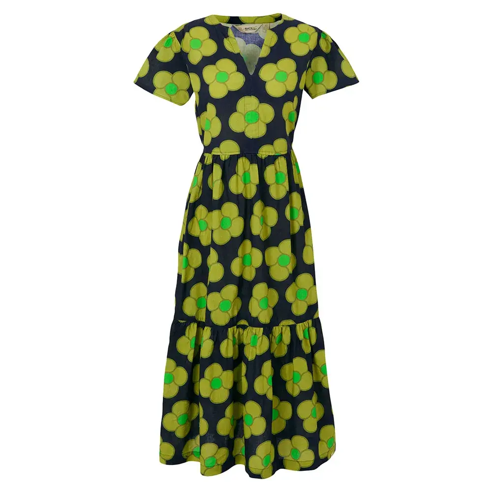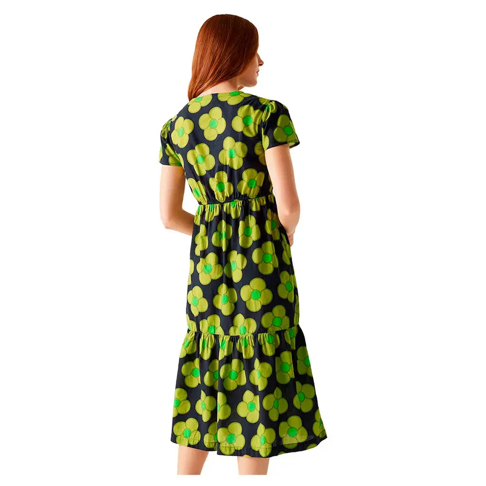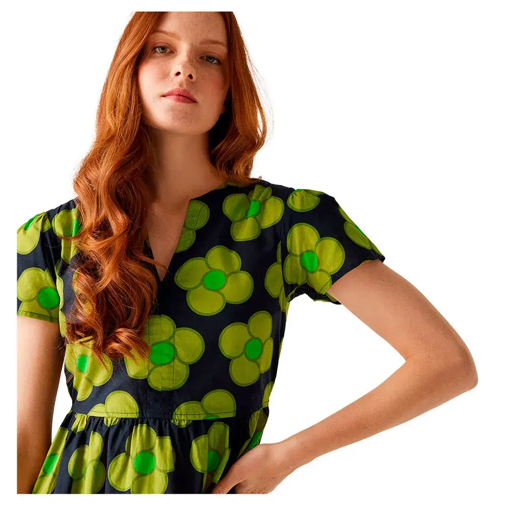 Суперстильное и удобное, наше многоярусное платье миди от Orla Kiely украсит ваш повседневный образ. Изготовленное из 100% хлопкового поплина, это стильное платье обеспечивает мягкость и воздухопроницаемость. Это элегантное платье отличается изысканным V-образным вырезом и очаровательными рукавами-водопадами, создавая изящный и стильный образ. Присборенные многоярусные панели добавляют объема и движения, подчеркивая женственный силуэт. Это платье, разработанное Орлой Кили, сочетает в себе уникальный художественный стиль и вневременную элегантность. Идеально подходит для любого случая, повседневного или торжественного.