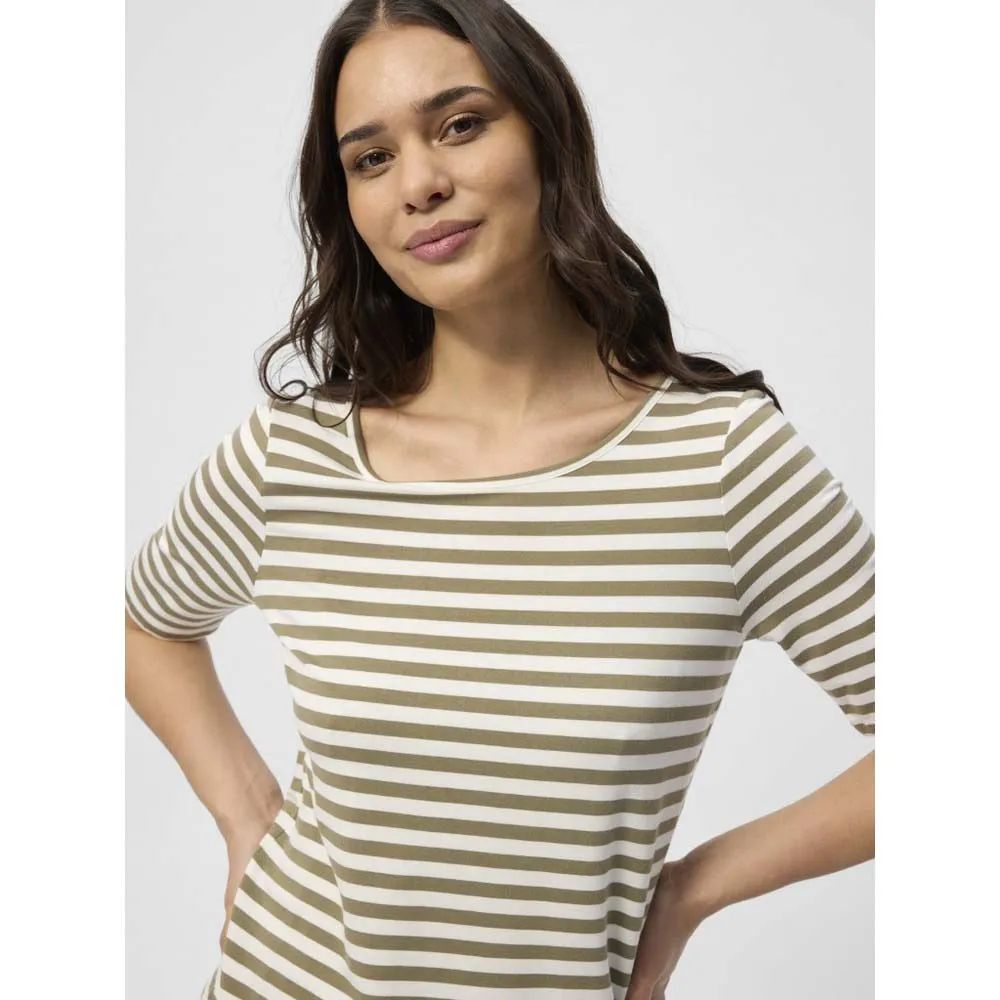 Ощутите идеальное сочетание стиля и комфорта с облегающим силуэтом Hedy. Классический дизайн с короткими рукавами и универсальный круглый вырез горловины предлагают вневременную привлекательность, а легкая, дышащая ткань красиво драпируется на теле, обеспечивая комфорт в течение всего дня.