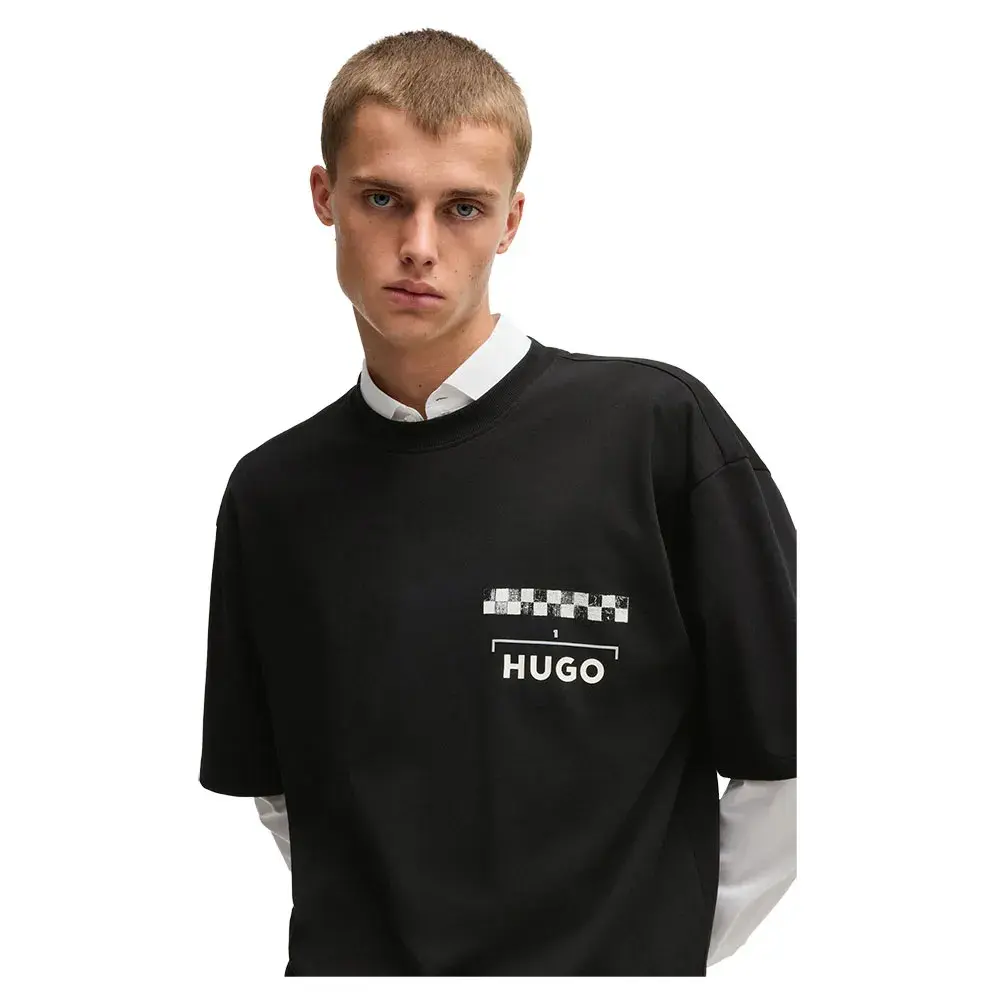 Эта футболка HUGO Menswear с принтом на гоночную тематику отлично подойдет для обновления повседневной коллекции. Удобный свободный крой. Мягкий хлопковый трикотаж.