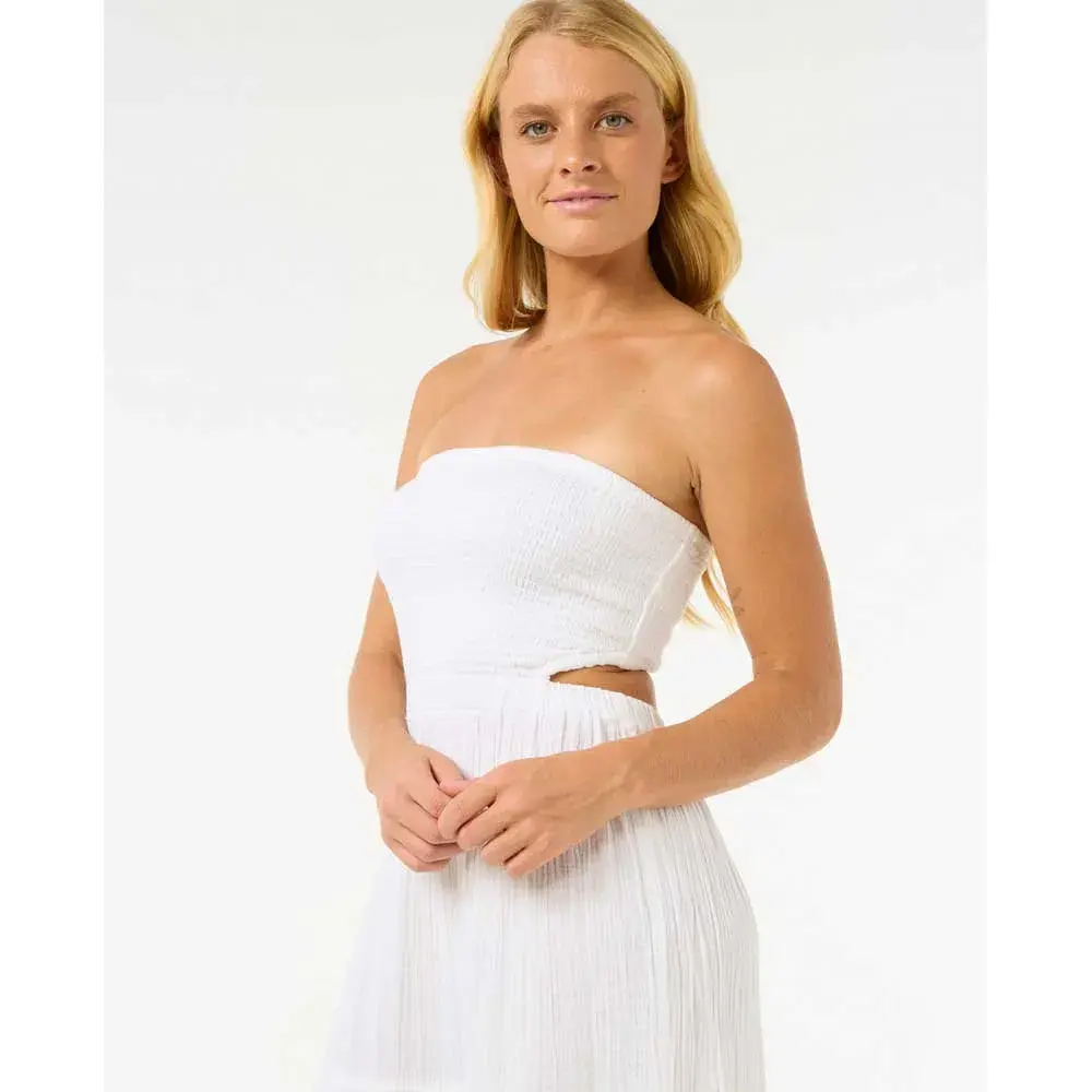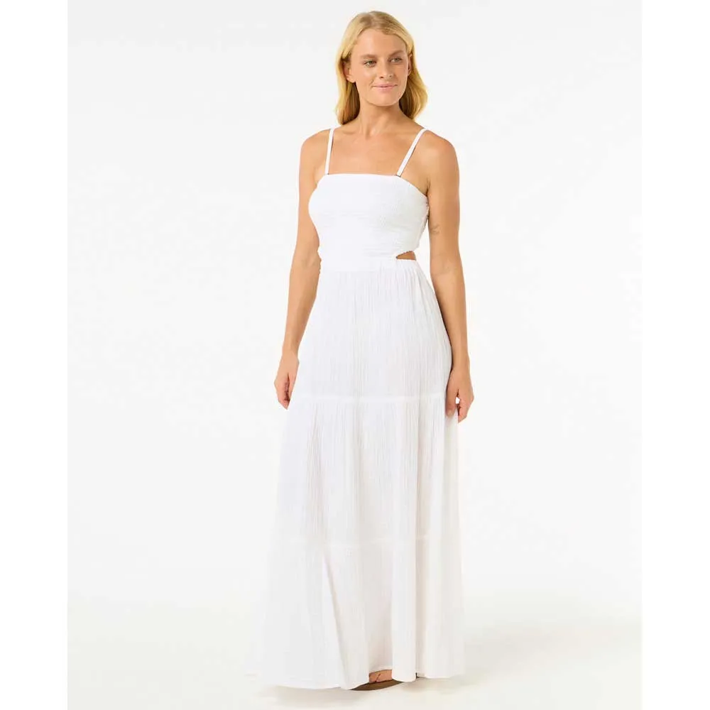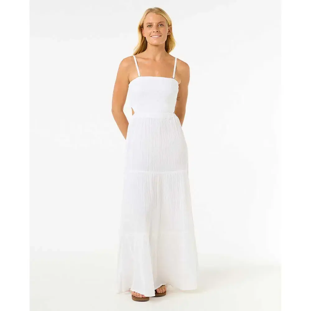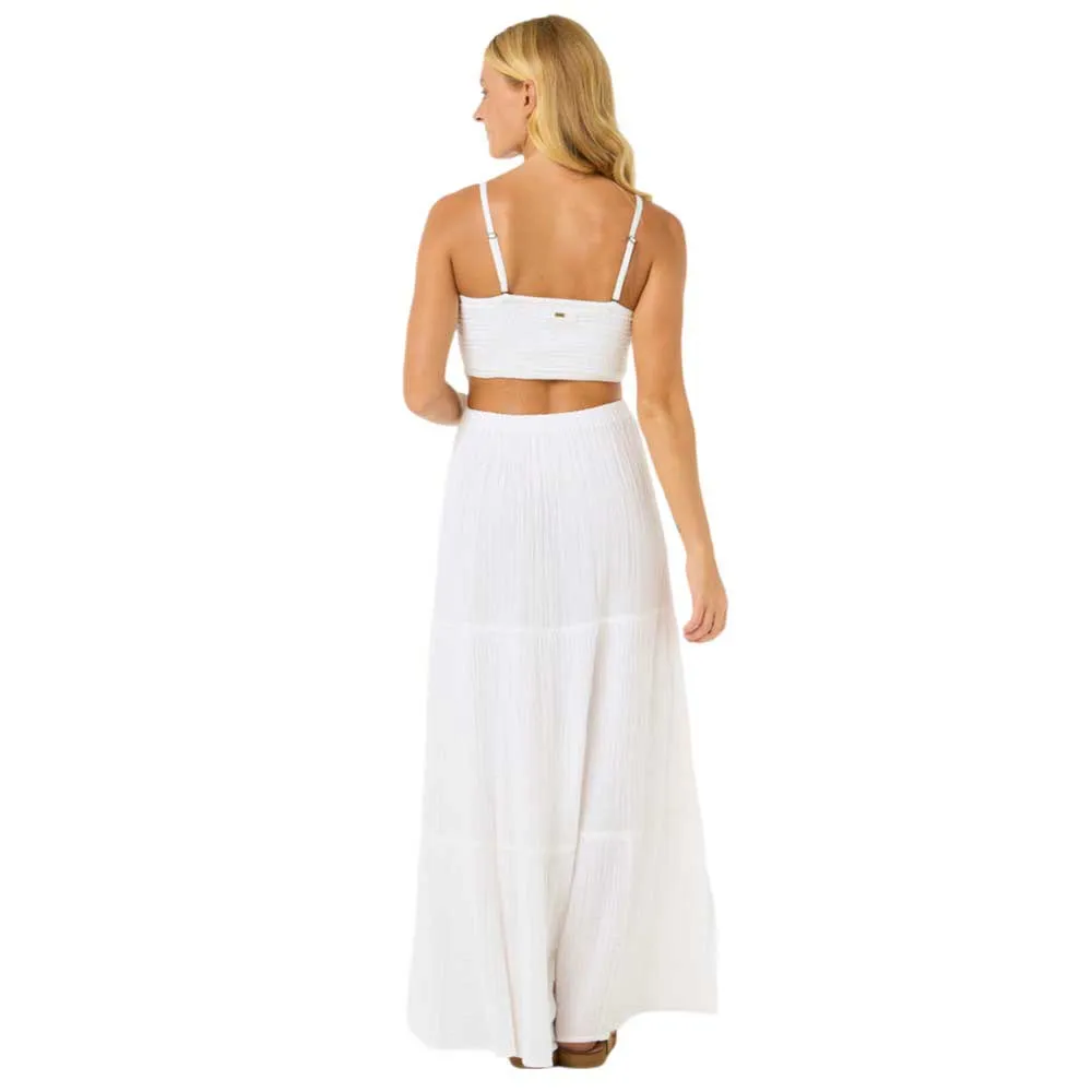 Платье Premium Surf Maxi Dress выполнено из воздушного хлопкового газа, имеет съёмные бретели и элегантные сборочки. Отличный вариант для солнечных вечеров или отдыха на берегу моря.