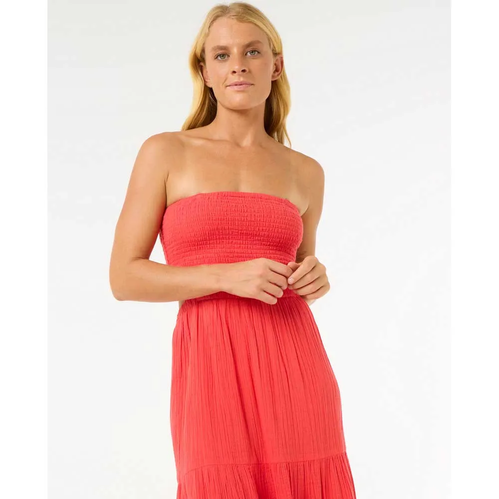 Платье Premium Surf Maxi Dress выполнено из воздушного хлопкового газа, имеет съёмные бретели и элегантные сборочки. Отличный вариант для солнечных вечеров или отдыха на берегу моря.