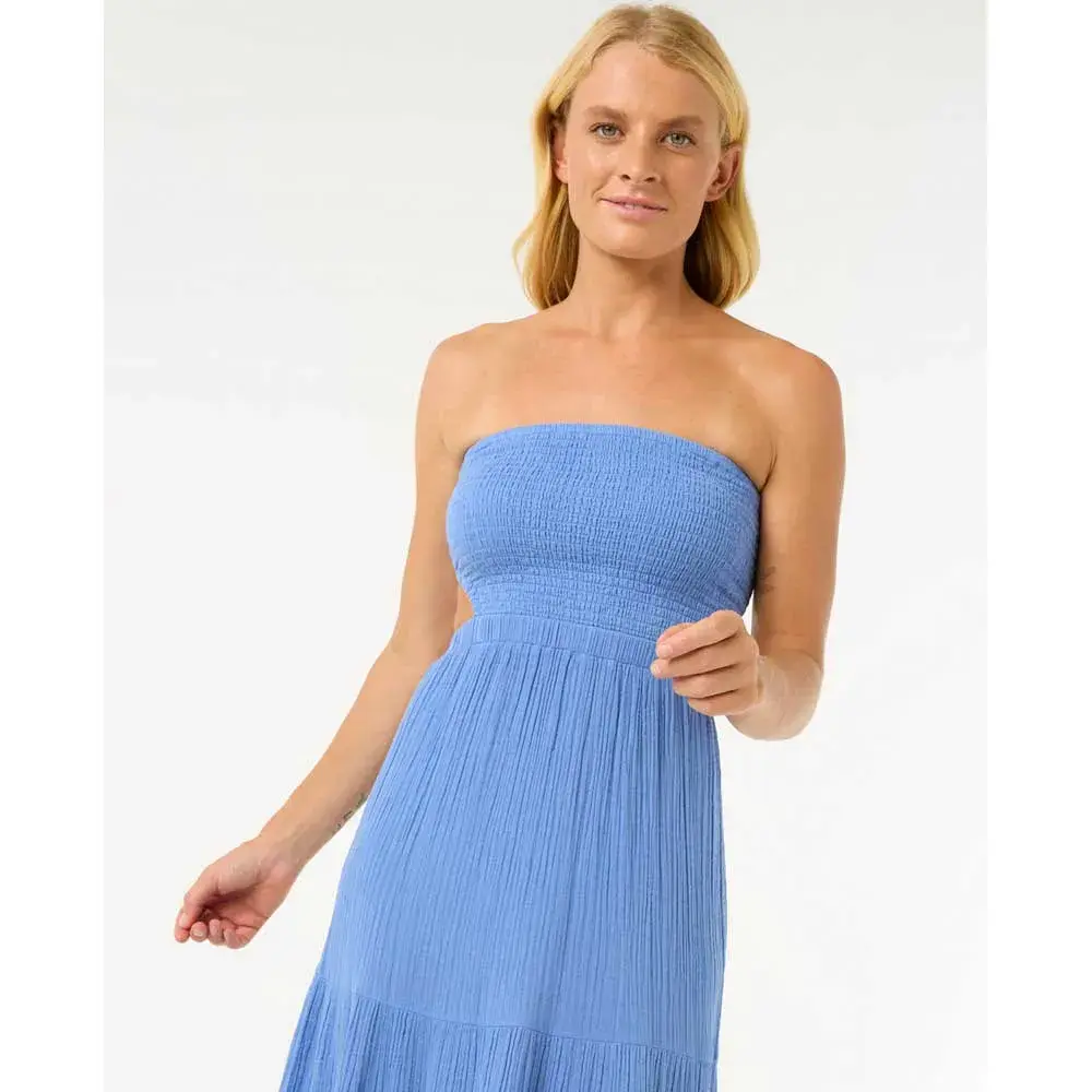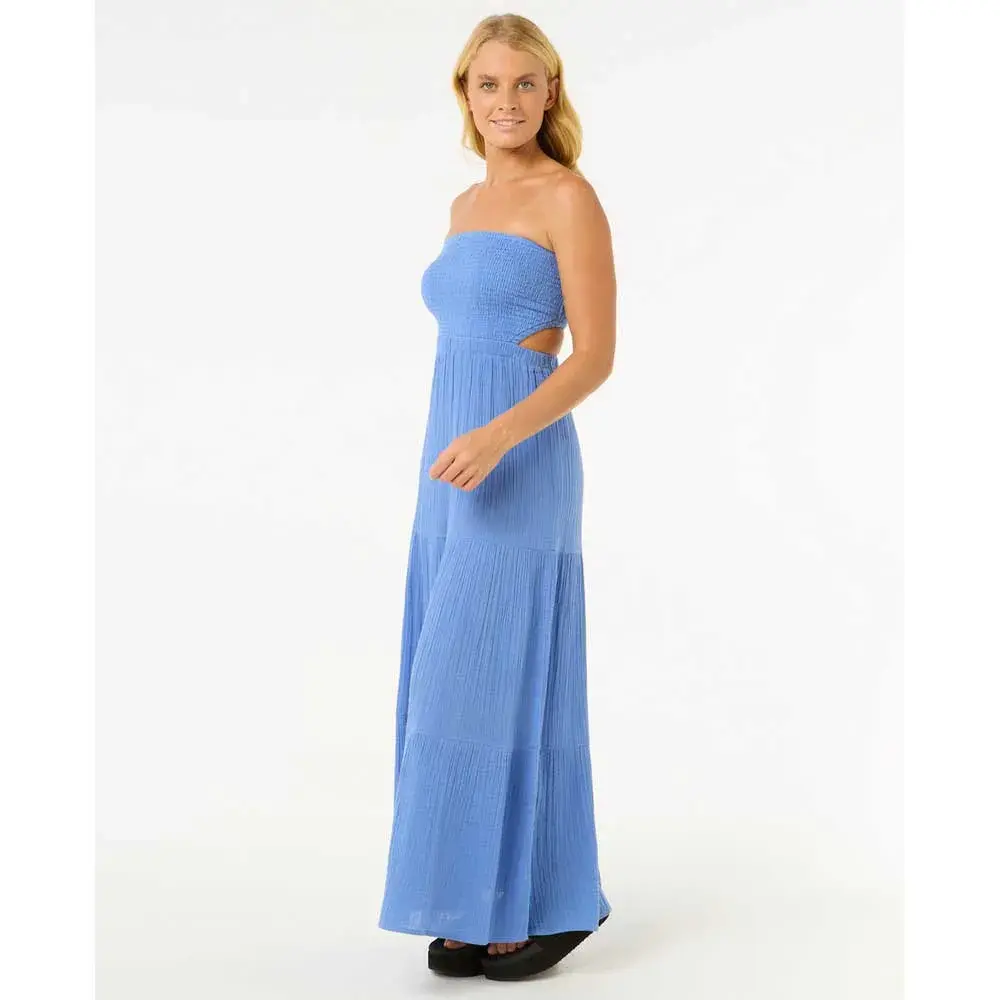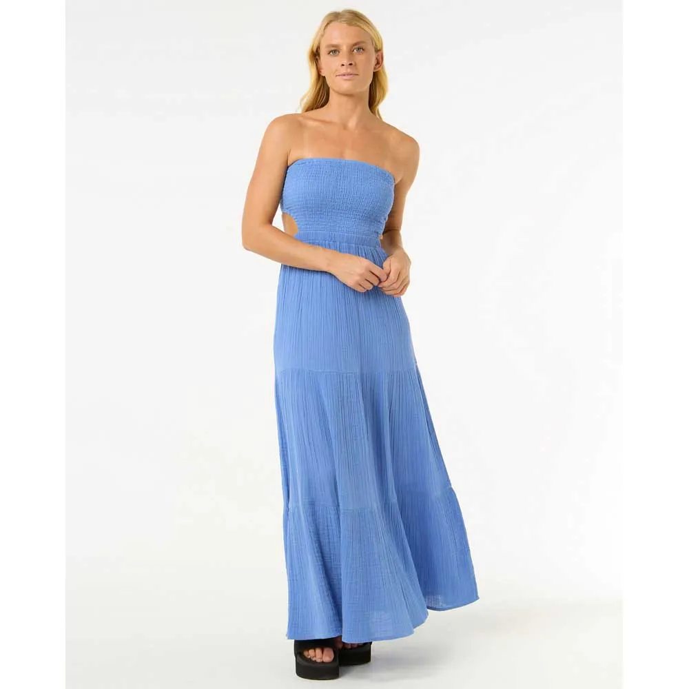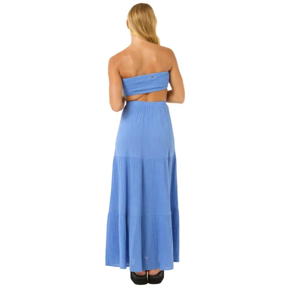 Платье Premium Surf Maxi Dress выполнено из воздушного хлопкового газа, имеет съёмные бретели и элегантные сборочки. Отличный вариант для солнечных вечеров или отдыха на берегу моря.
