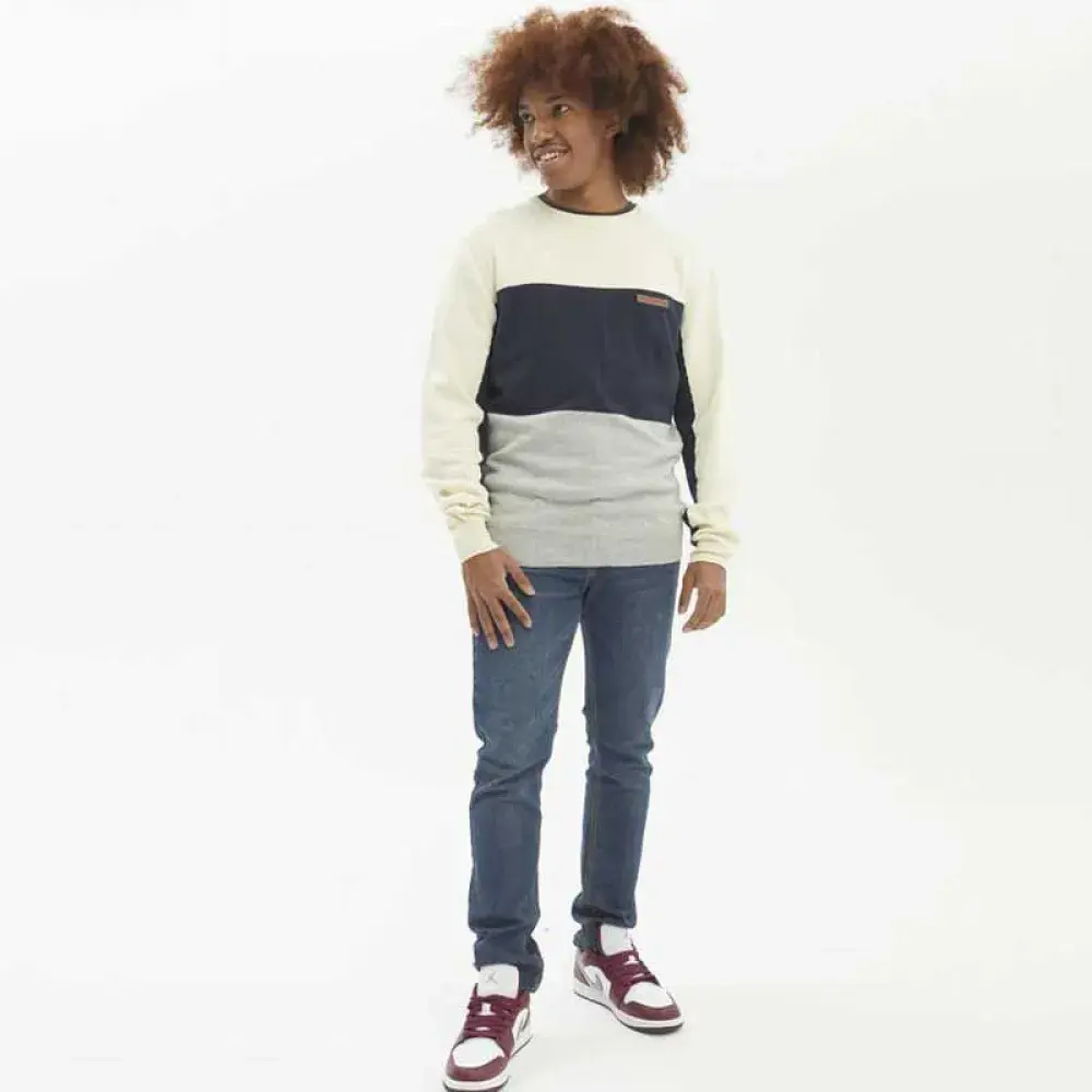 Simi — это мягкий вязаный свитер с круглой горловиной, выполненный из пряжи 12-го класса и дополненный контрастными Y/D панелями для классического и элегантного зимнего образа.
