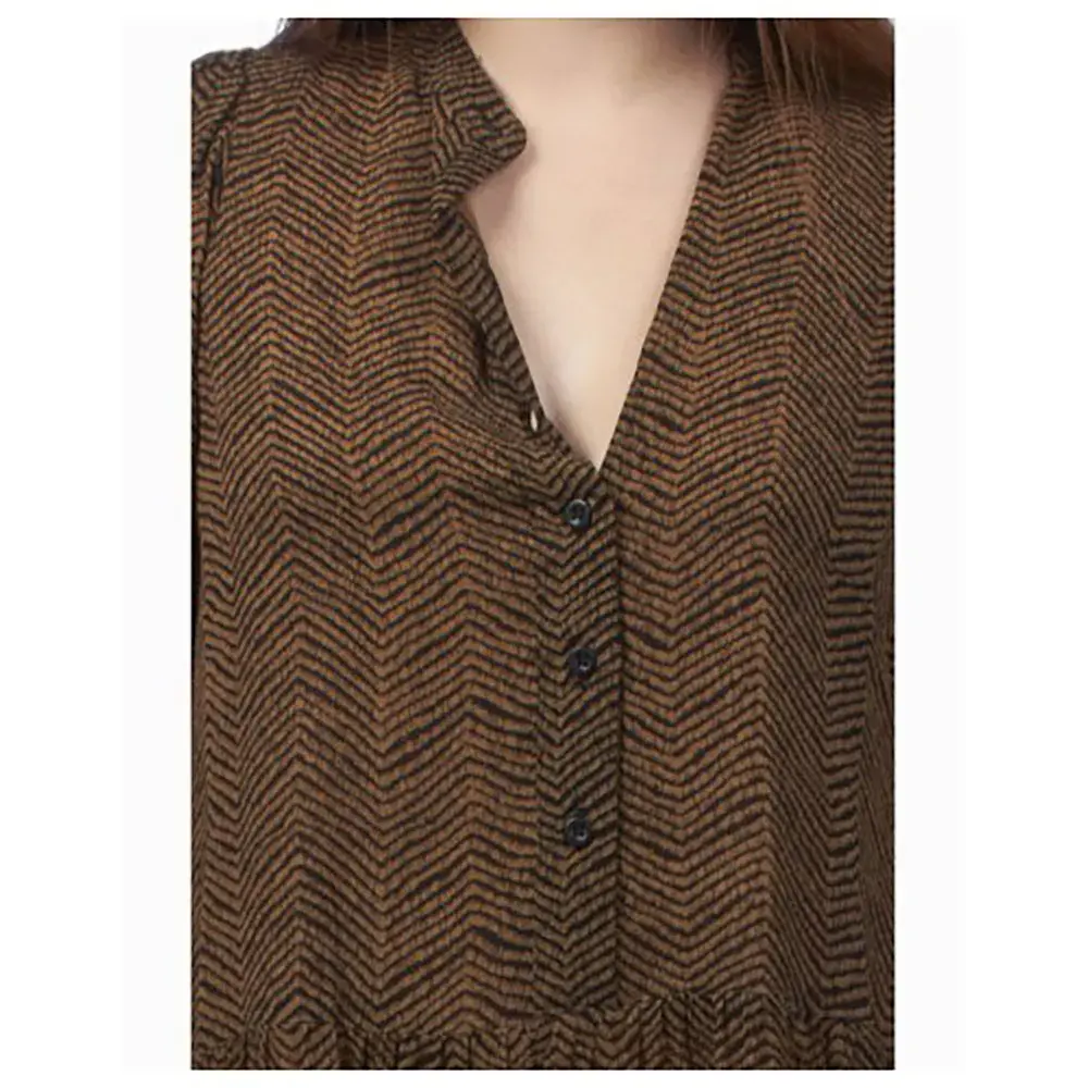 Платье Severine может похвастаться тщательно продуманным дизайном, который подчеркивает различные типы фигуры. Его длина миди достигает универсально выгодной точки ниже колена, удлиняя ноги и создавая изящный силуэт. Длинные рукава обеспечивают дополнительное тепло и защиту, что делает его идеальным для прохладных дней или смены сезонов. Анималистичный принт, вневременной и привлекающий внимание узор, добавляет нотку индивидуальности и стиля, гарантируя, что вы выделитесь из толпы.