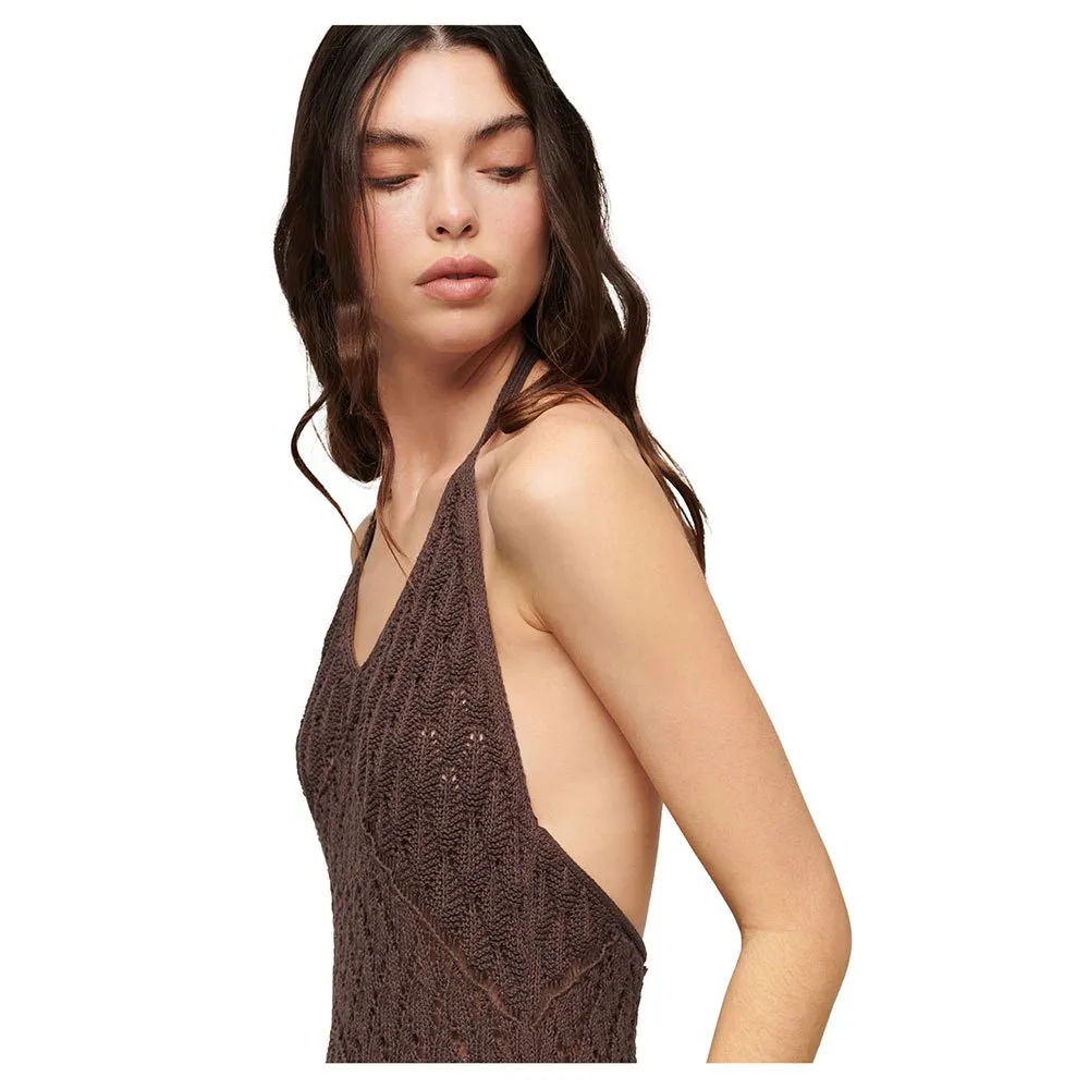 Идеальное праздничное платье в этом сезоне. Наше макси-платье с бретелькой через шею, связанное крючком, создано специально для вас: открытая спинка и материал, связанный крючком, выводят платье на новый уровень и идеально подходят для ваших праздничных приключений в этом сезоне.