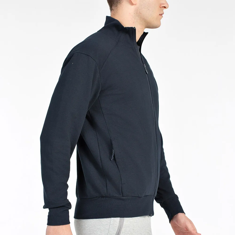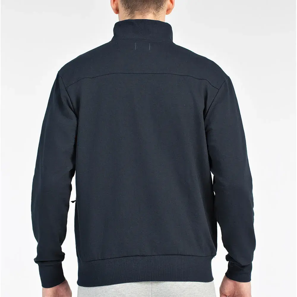 Открытая толстовка с воротником, подолом и ребристыми манжетами, карманами на молнии, вставленными в боковые швы, вышитым логотипом.