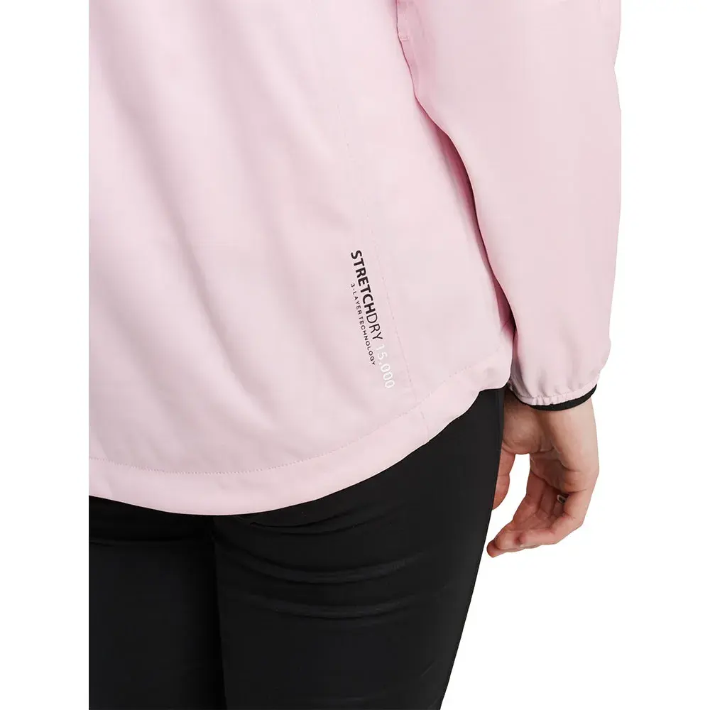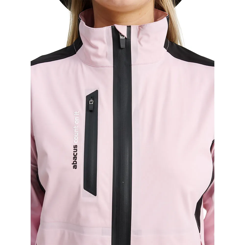 Куртка Bounce Rain изготовлена из водонепроницаемой ткани, растягивающейся в 4 стороны и обладающей высокой воздухопроницаемостью. Все швы проклеены мягкой и эластичной лентой. Материал трёхслойный: снаружи и внутри ткань такая же мягкая и эластичная, как и внутри, а между слоями расположена функциональная мембрана. Эта мембрана не пропускает дождь и позволяет теплу вашего тела испаряться. Подкладка в куртке отсутствует благодаря мягкой внутренней части, что обеспечивает максимальный комфорт во время игры. Куртка имеет водонепроницаемую молнию спереди, нагрудный карман и два передних кармана. Логотип Abacus сзади на воротнике и вдоль нагрудного кармана. Светло-розовая куртка-дождевик с черными деталями.