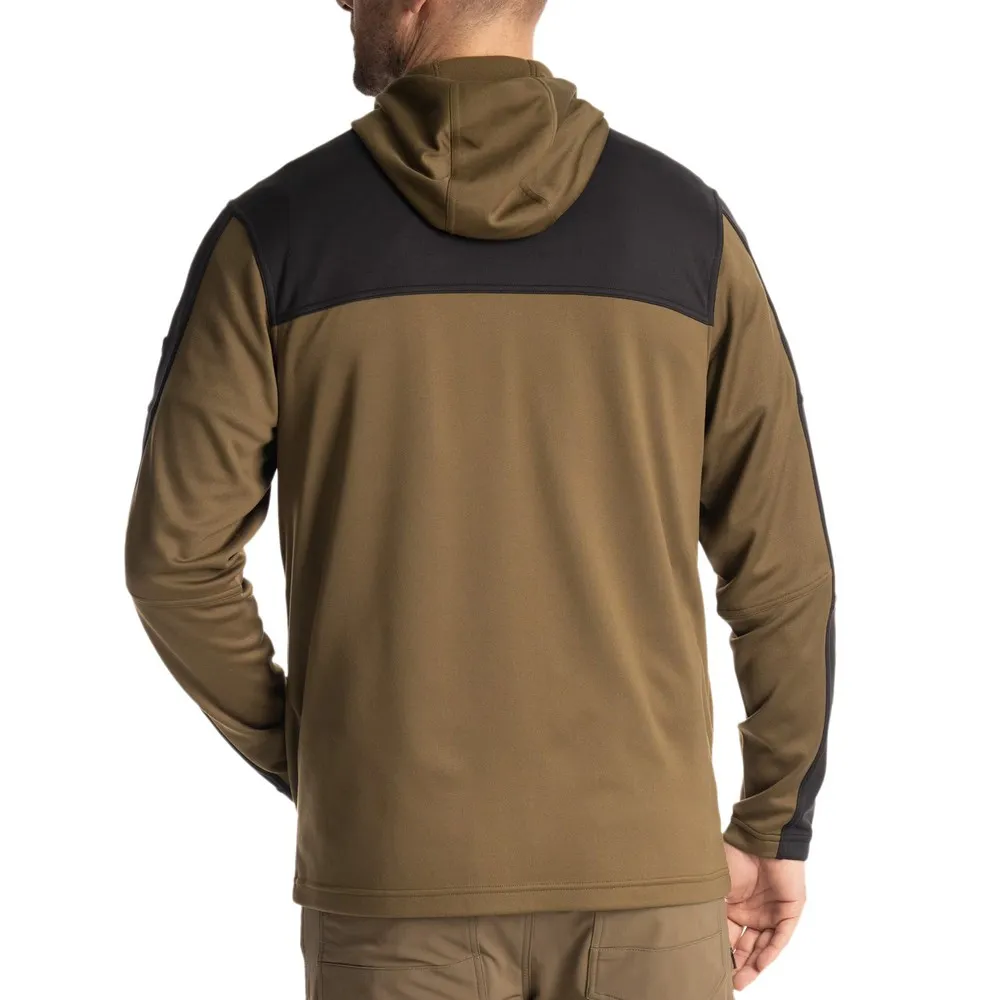 Худи Glacier Hoodie — это эластичный флис средней плотности с влагоотводящими свойствами и трёхпанельным капюшоном для полной защиты от холода. Флисовая толстовка с застёжкой-молнией по всей длине имеет высокий воротник для сохранения тепла и защитный клапан подбородка для комфорта и защиты. Толстовка с капюшоном обычного кроя также имеет эластичную структуру для неограниченных движений.