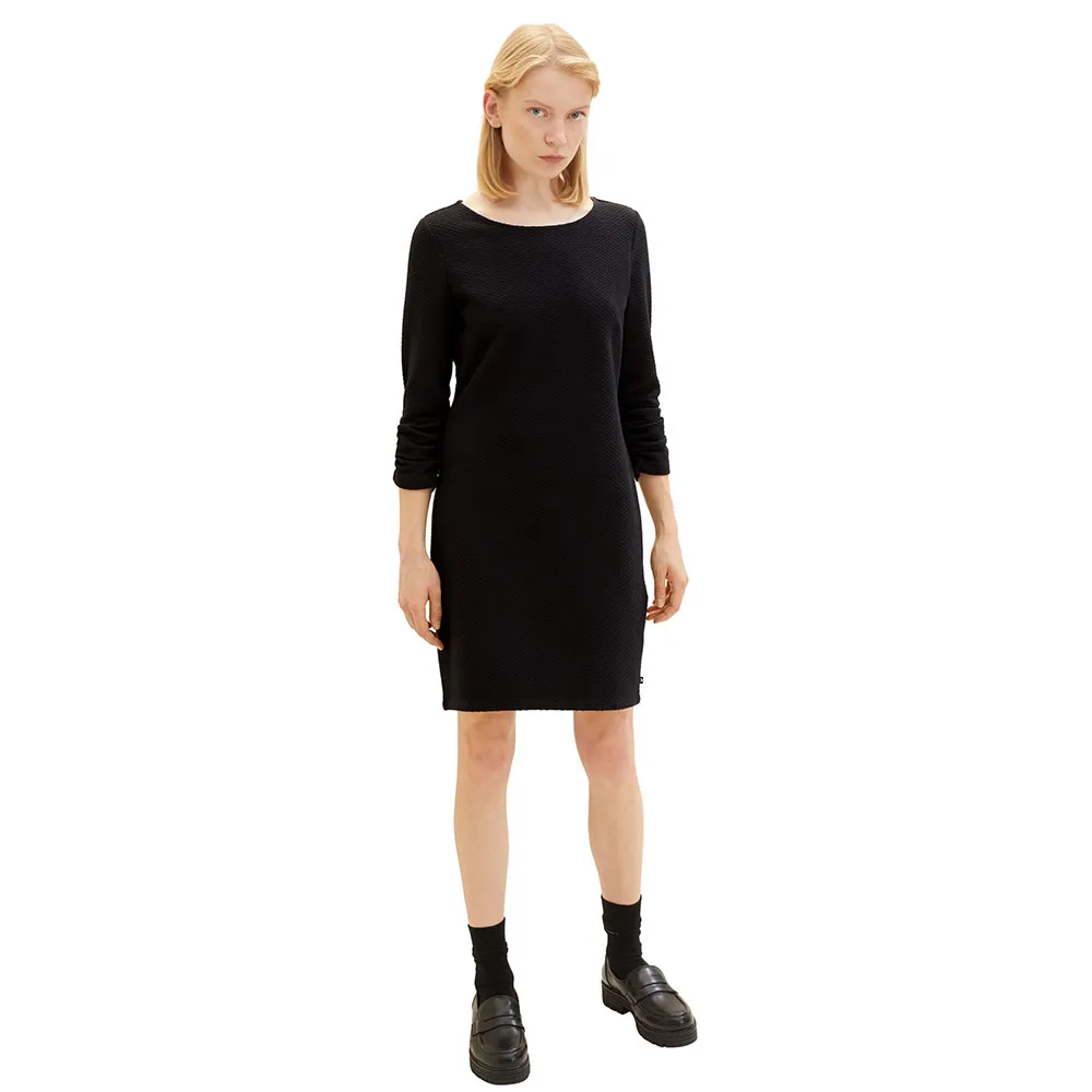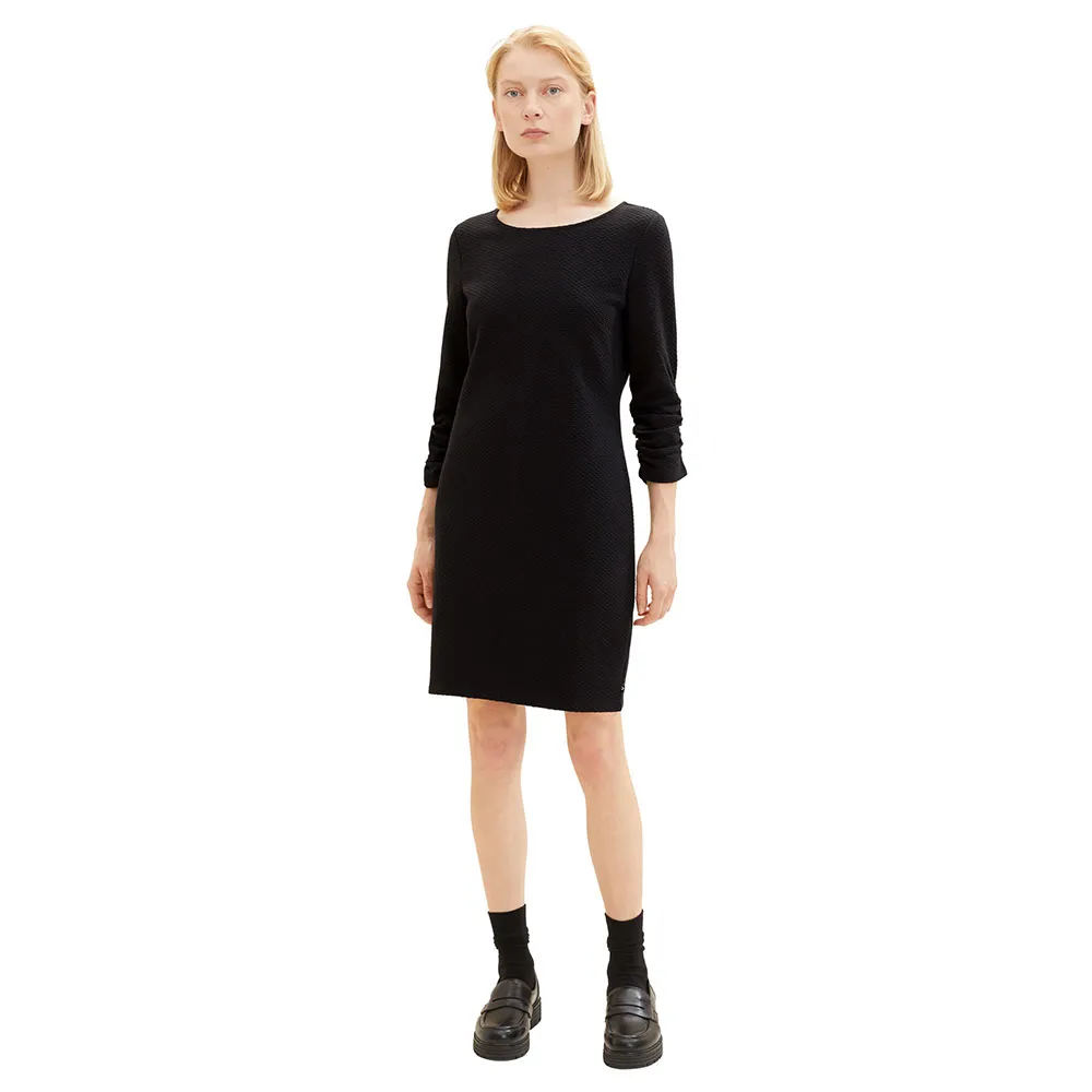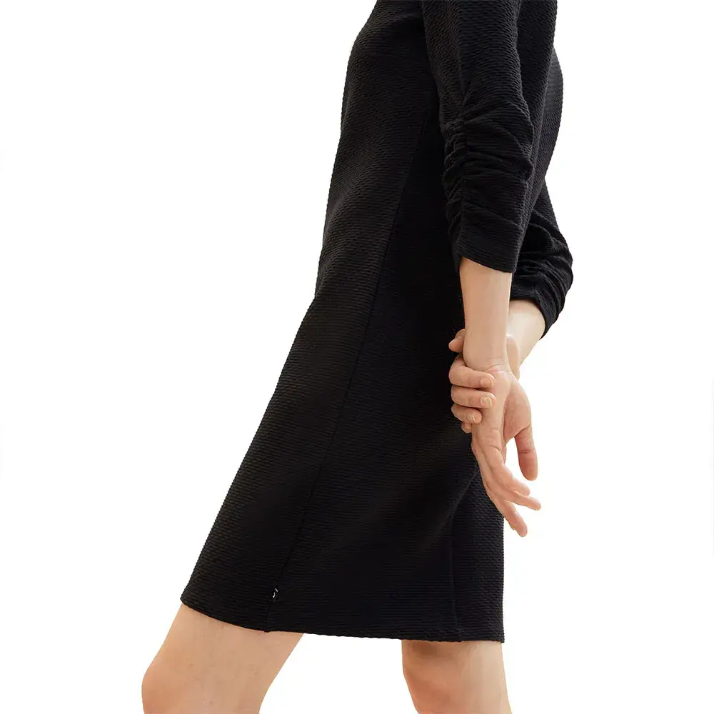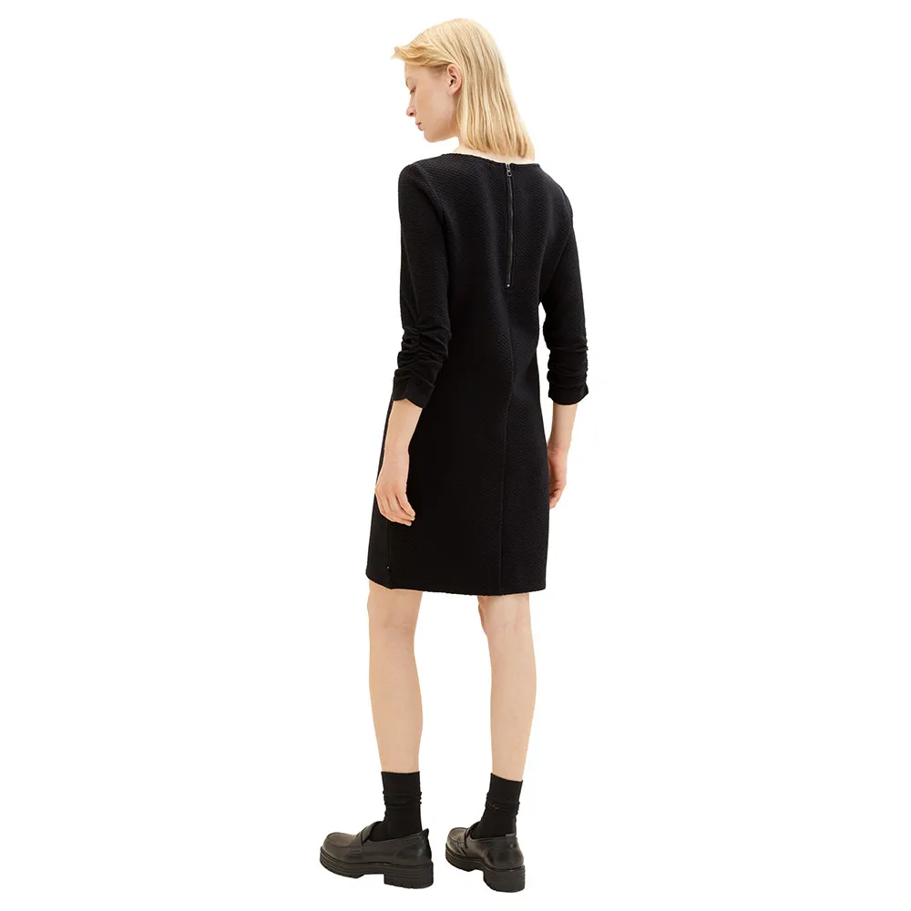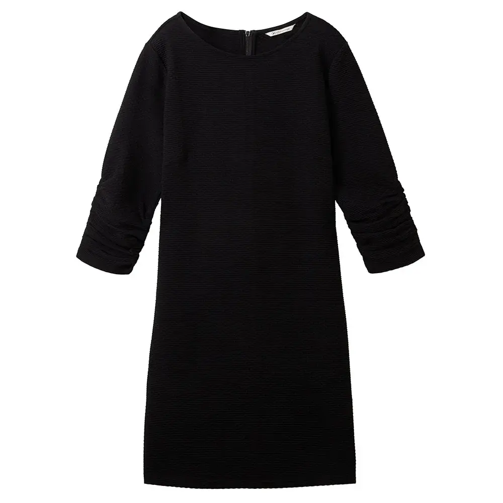 - Рукава 3/4 с круглым вырезом и застежкой-молнией на спине.