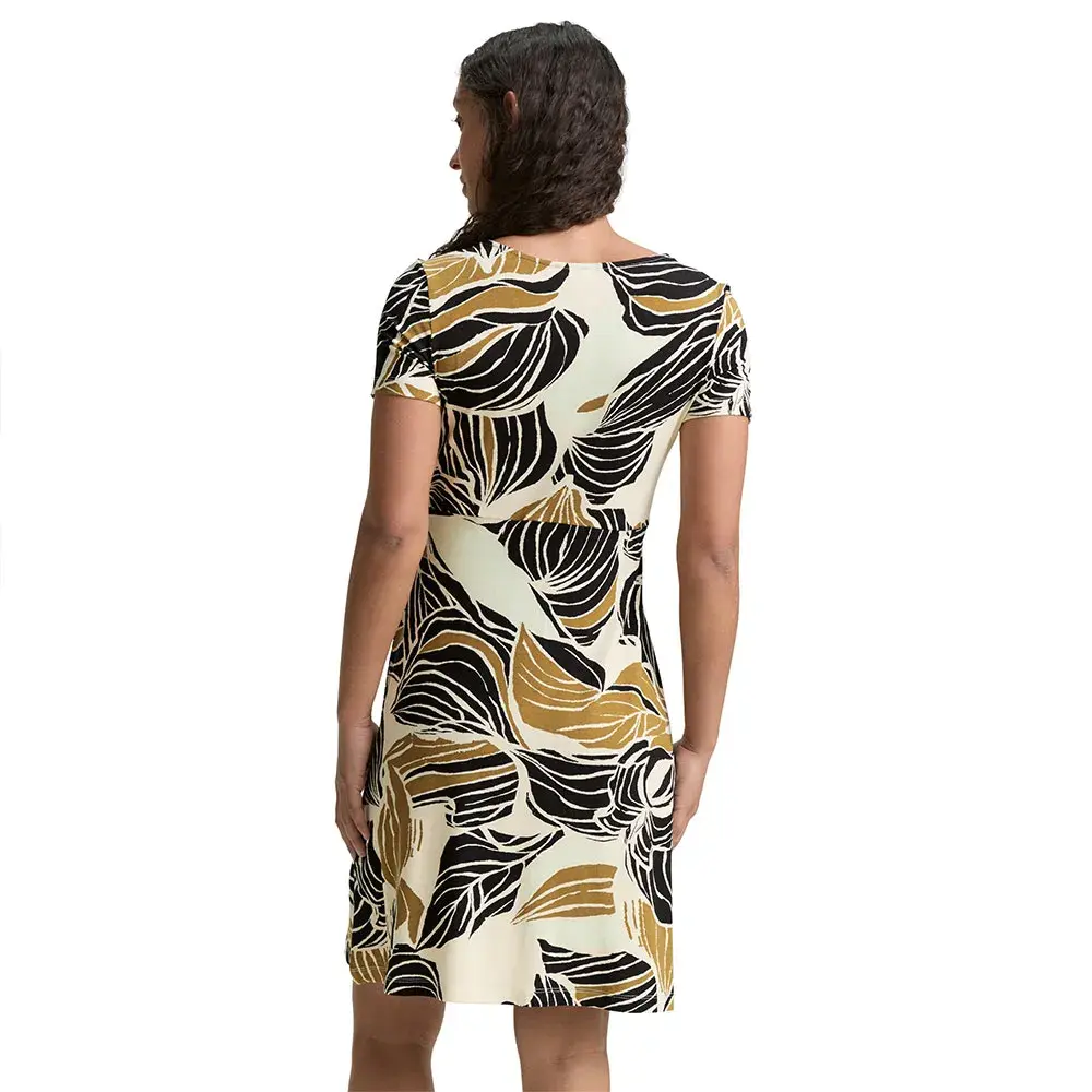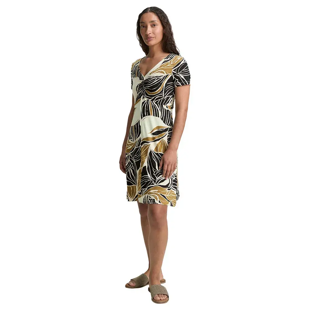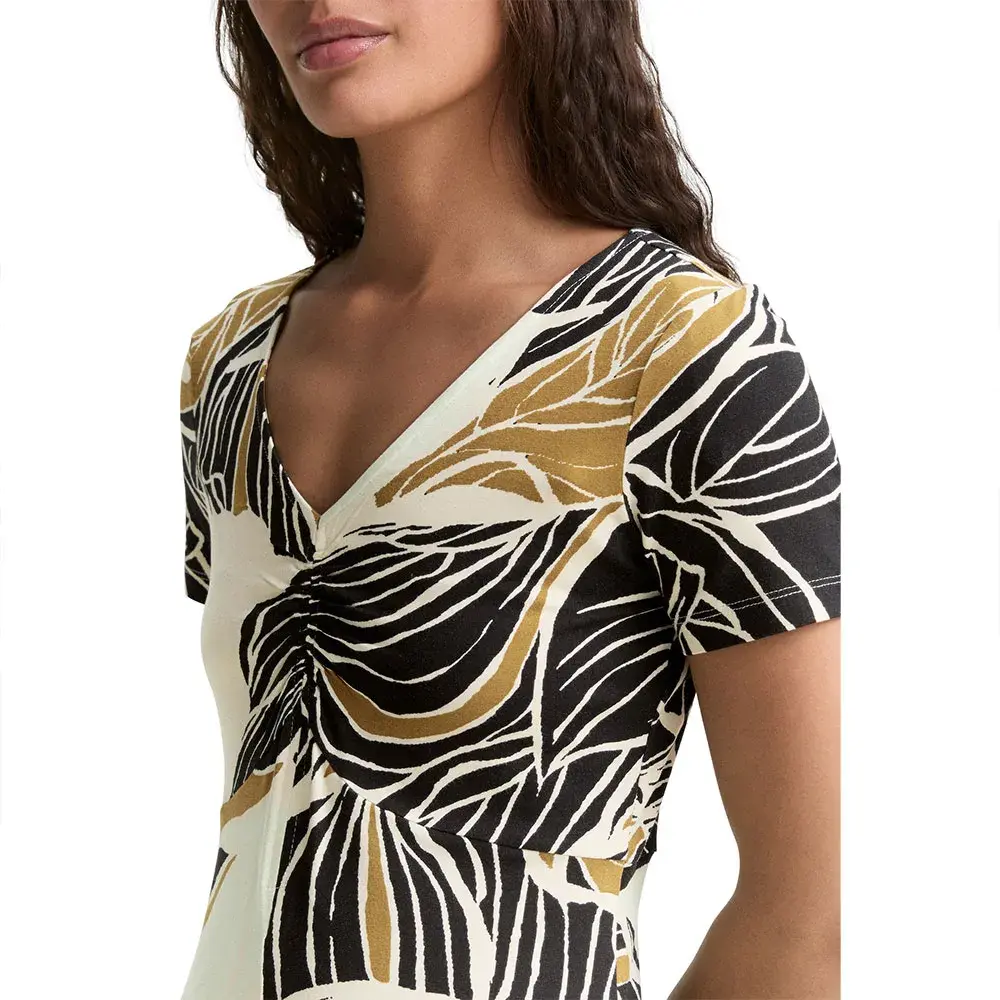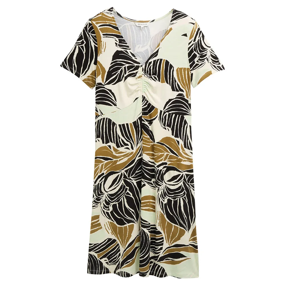 Платье длиной до колена с небольшими сборками.