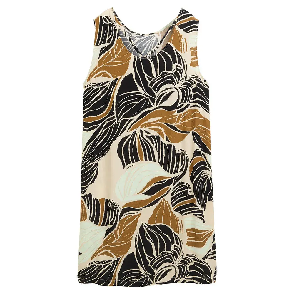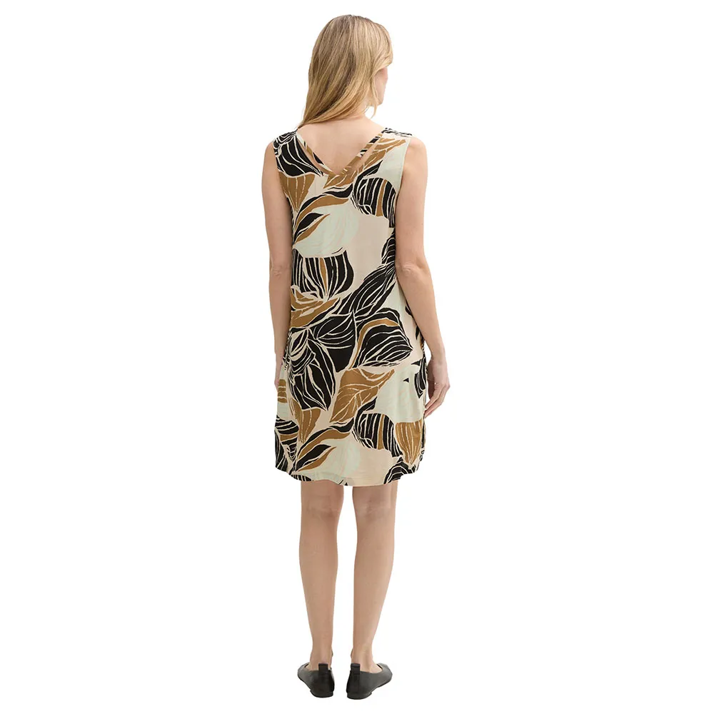 Платье без рукавов из фактурного крепового материала с вырезом на спине.