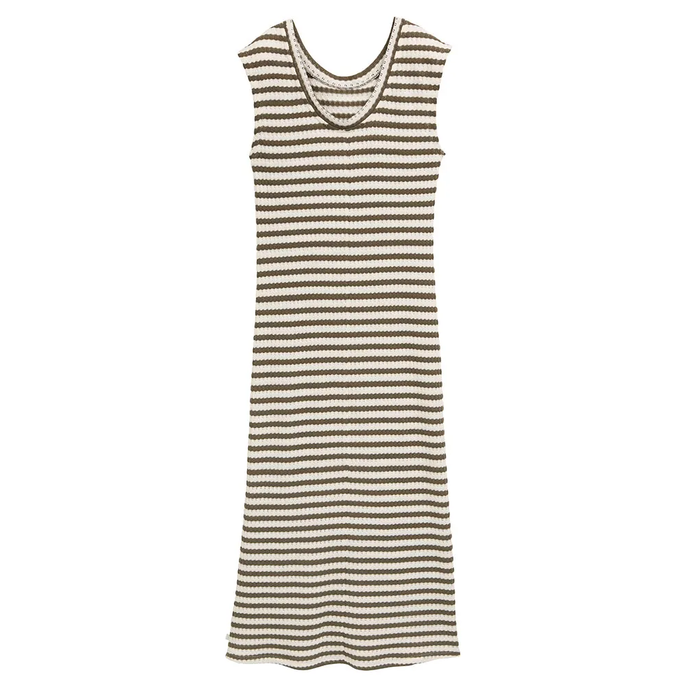 Дизайн без рукавов в полоску этого платья делает его универсальной вещью, которую можно стилизовать бесчисленным количеством способов. Сочетайте его с сандалиями и соломенной шляпой для повседневного летнего образа или наденьте его с каблуками и эффектным ожерельем для более изысканного вечернего ансамбля. Возможности безграничны. Удобная и дышащая хлопковая ткань делает его идеальным для теплой погоды, а классический дизайн гарантирует, что оно никогда не выйдет из моды.