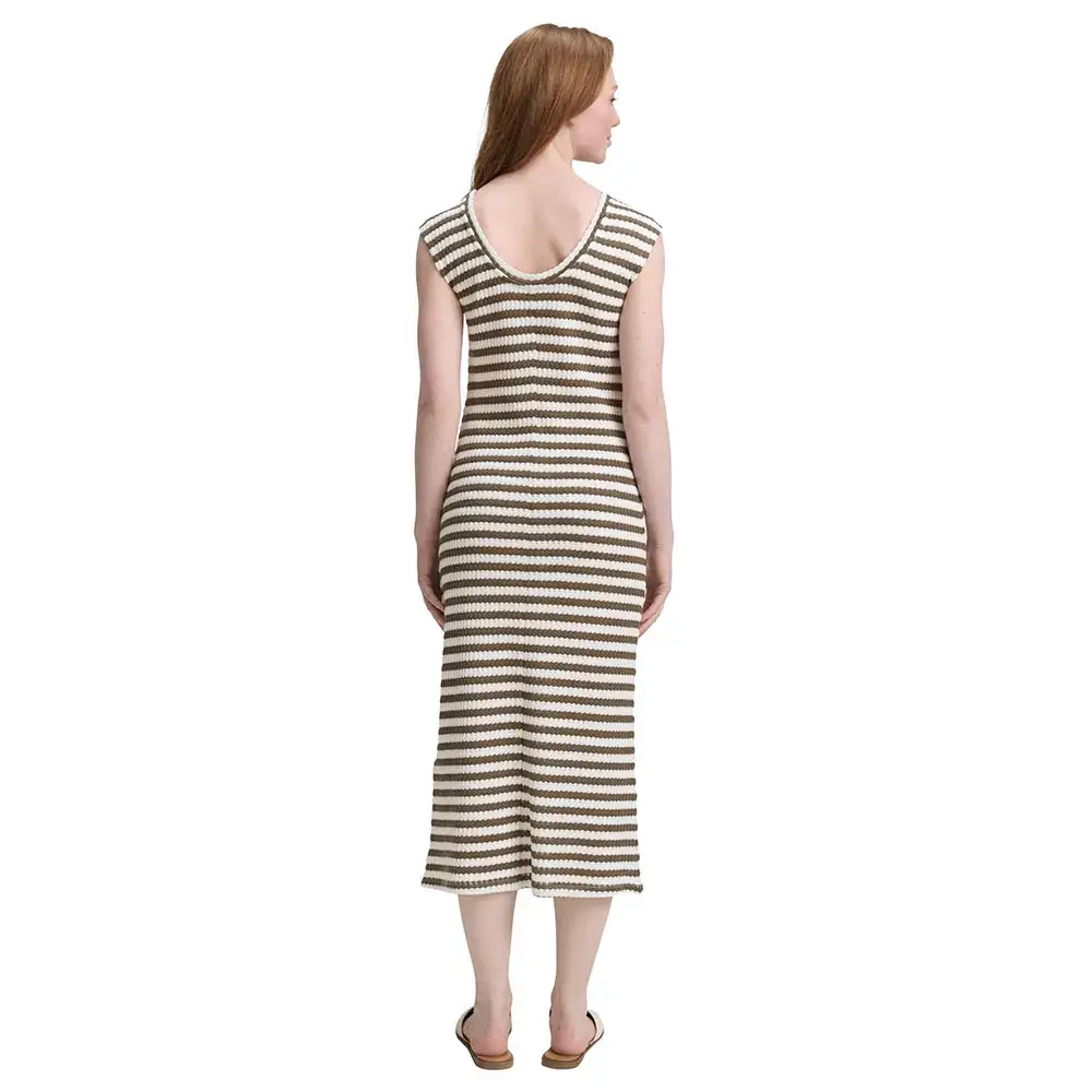 Трикотажное платье TOM TAILOR — это больше, чем просто платье; это эффектная вещь, отражающая ваш личный стиль. Сочетание комфорта, стиля и универсальности делает его обязательным для любой женщины, следящей за модой. Длина миди универсально подчеркивает фигуру, а безрукавка обеспечивает свободу движений и легкость в укладке. Классические полоски добавляют нотку изысканности и вневременности, гарантируя, что это платье останется основной вещью в вашем гардеробе на долгие годы.