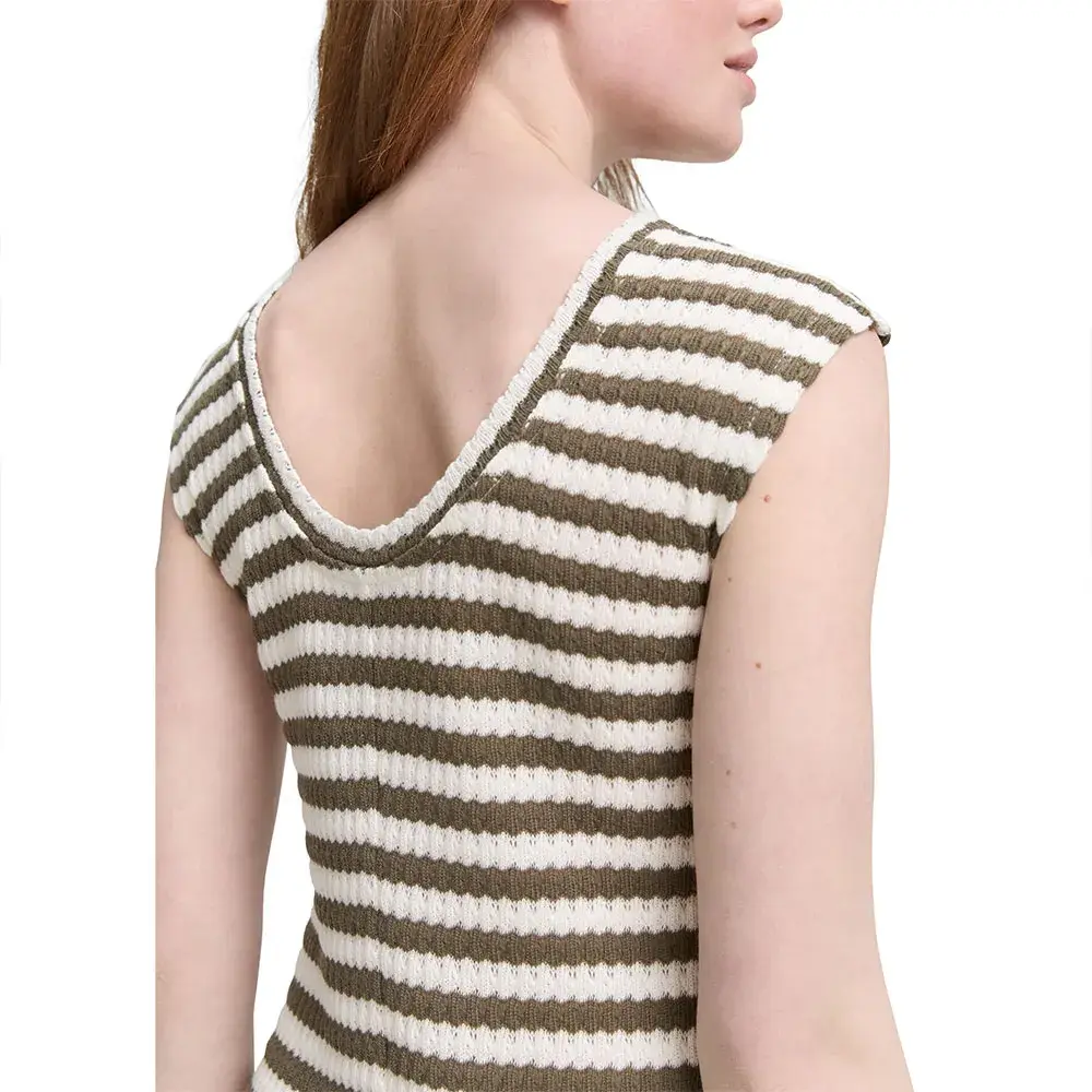 Украсьте свой повседневный стиль с помощью элегантного и непринужденного трикотажного платья TOM TAILOR. Это платье миди длиной сочетает в себе комфорт любимого трикотажа и элегантность изысканного платья, что делает его универсальным дополнением к вашему гардеробу. Идеально подходит для теплой погоды и переходных сезонов: безрукавный крой сохраняет прохладу, а облегающий силуэт красиво драпируется на любом типе фигуры. Классический полосатый узор добавляет нотку вневременной привлекательности, делая это платье подходящим для самых разных случаев.