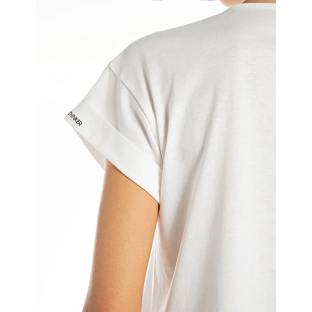 Ощутите максимальную повседневную роскошь. Главное преимущество этой футболки заключается в ее исключительных ощущениях и универсальности. Изготовленная из высококачественной, мягкой на ощупь ткани, она красиво драпируется на коже, обеспечивая воздухопроницаемость и комфорт на весь день. Его простой, минималистичный дизайн делает его невероятно мощным предметом гардероба. Без отвлекающей графики, он позволяет вашему личному стилю сиять, выступая в качестве чистого холста для аксессуаров с ожерельями, шарфами или надевания под ваши любимые куртки, кардиганы или блейзеры.