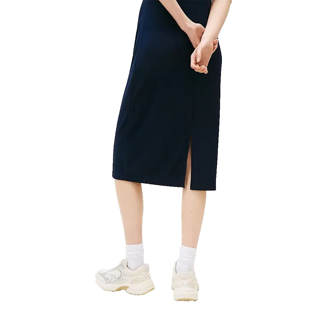 Воплотите непринужденную эстетику в этом миди-платье с ребристой текстурой и подчеркивающим фигуру круглым вырезом.