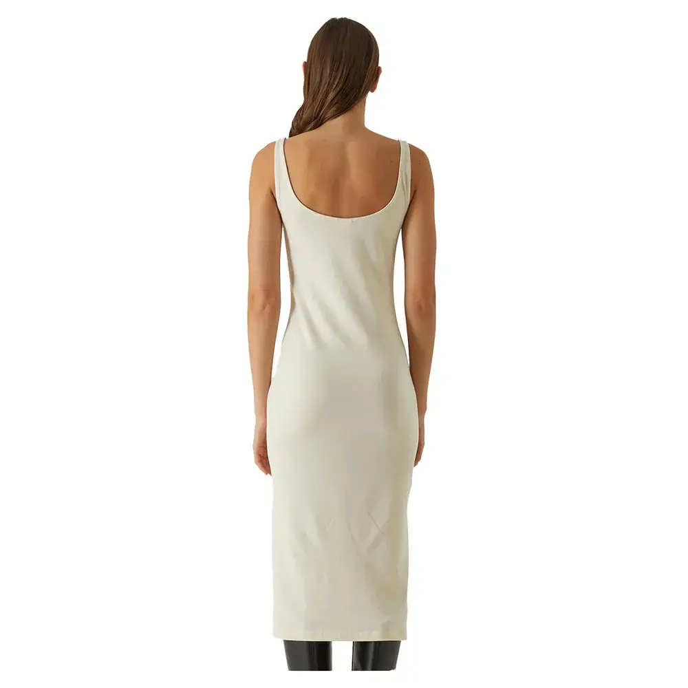 Это платье без рукавов, созданное для максимального комфорта, выполнено из мягкого и дышащего хлопкового джерси, который невероятно приятен на ощупь. Длина миди выгодно подчеркивает фигуру любого типа, а классический круглый вырез горловины и отсутствие рукавов придают ему вневременную привлекательность.