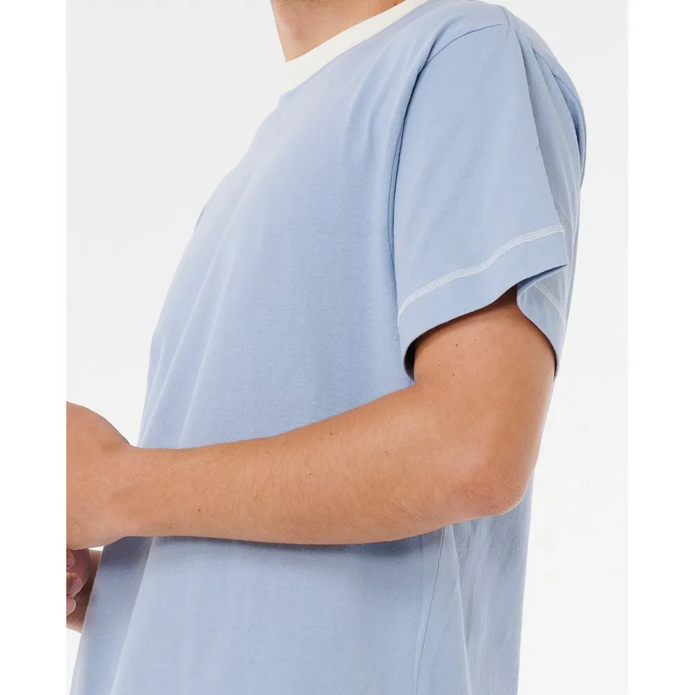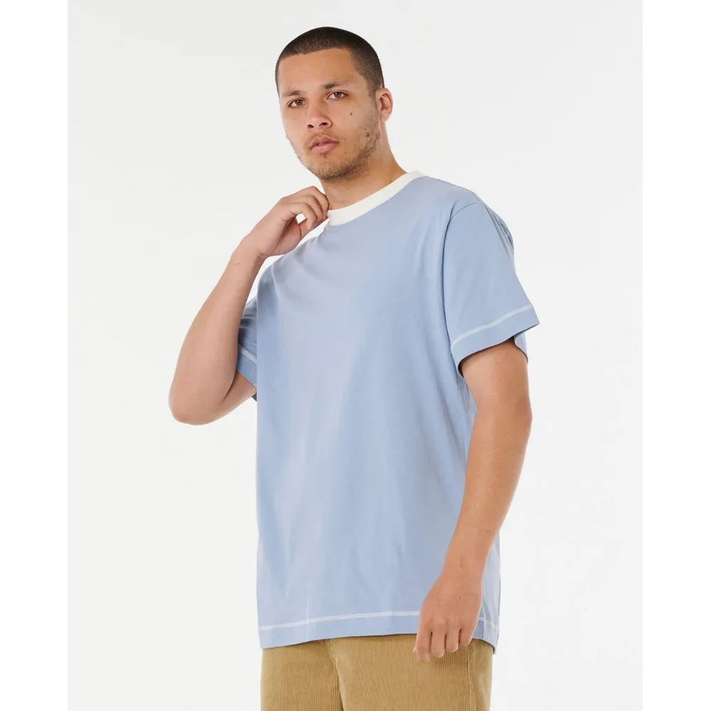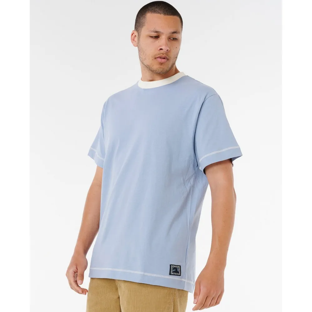 Эта футболка из хлопка с эффектом потертости имеет свободный крой, украшена тканым значком и внутренней этикеткой на горловине. Классический стиль для серфинга, удобный для повседневной носки или непринужденных выходных.