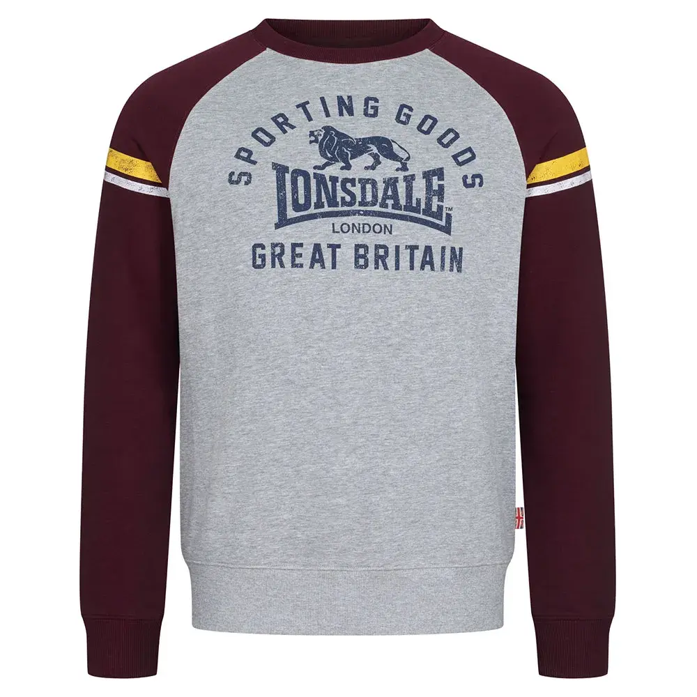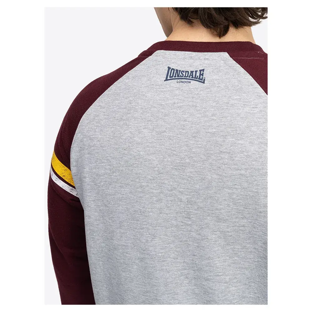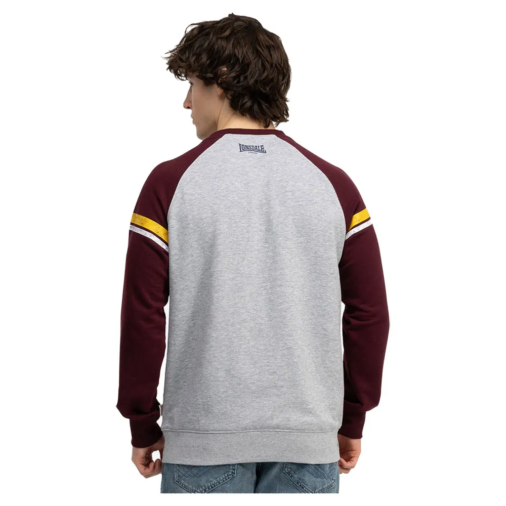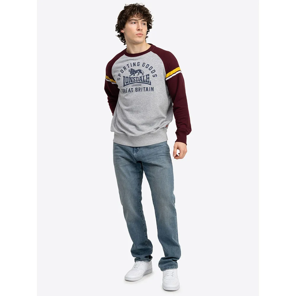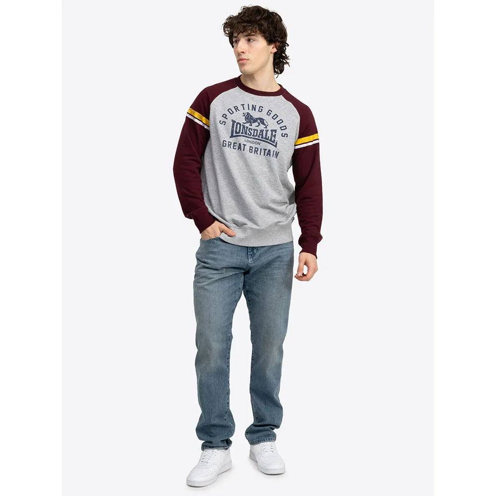Свитшот с различными принтами в стиле колор-блок. Рукава реглан с напечатанными полосками контрастируют с остальной частью свитера. Принты имеют винтажный вид и придают топу особую изюминку. Небольшая этикетка на боковом шве.
