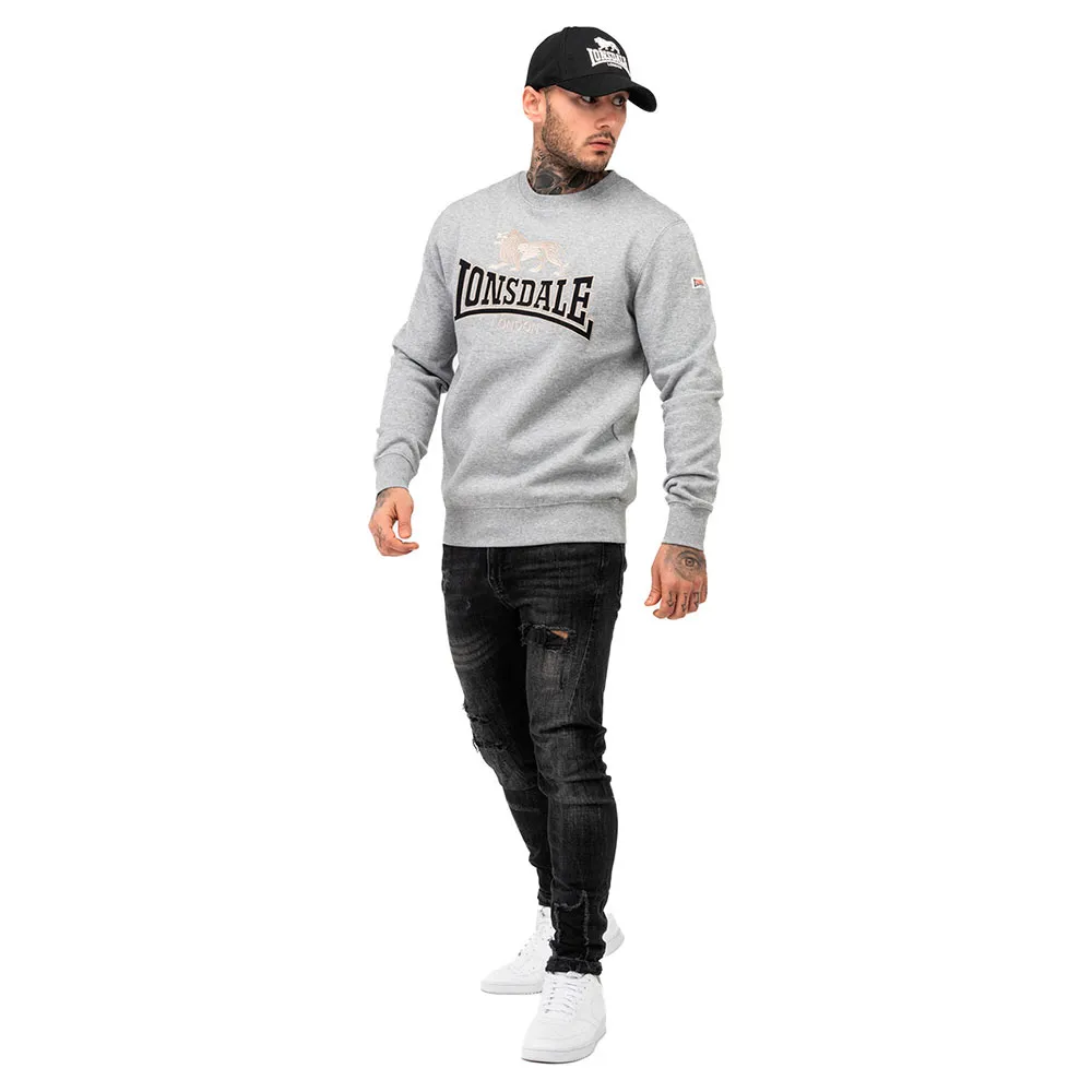 Толстовка с крупной вышитой аппликацией спереди и тканым лейблом Lonsdale на левом рукаве. Внутренняя окантовка горловины выполнена из контрастной ткани в клетку тартан.