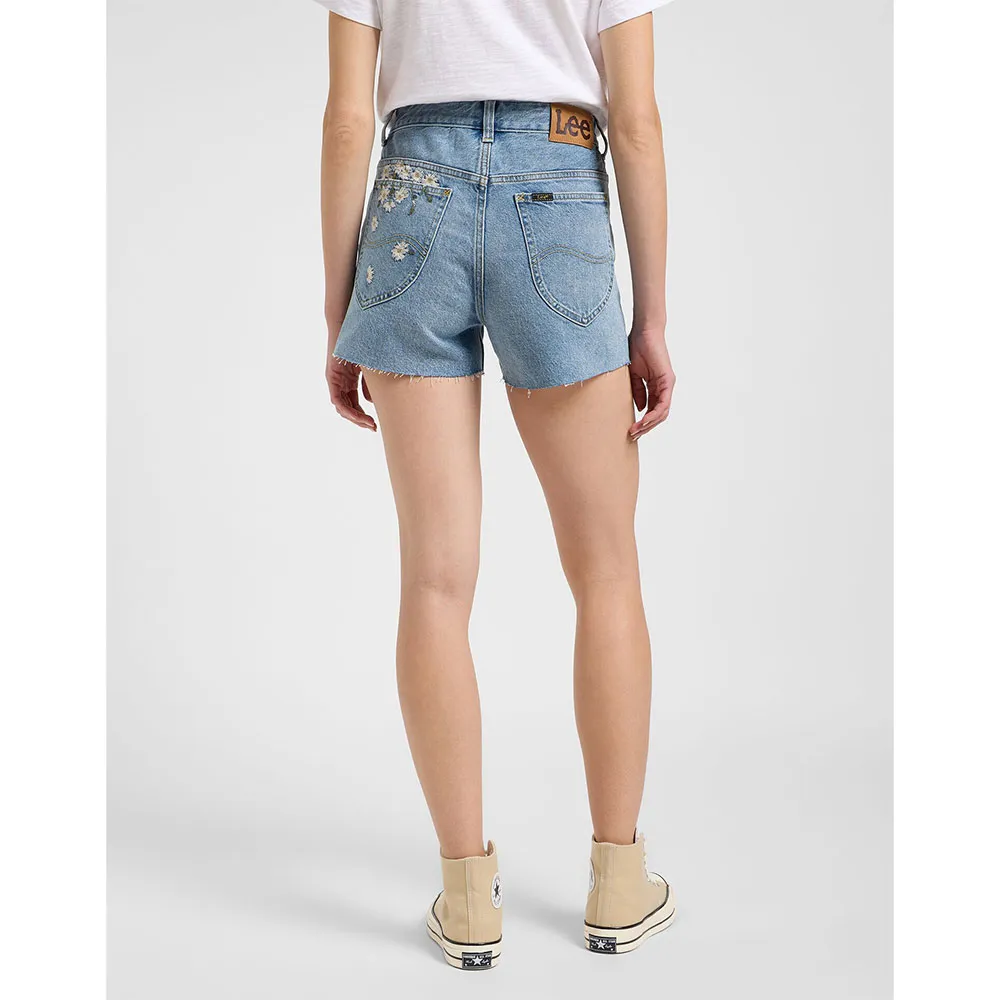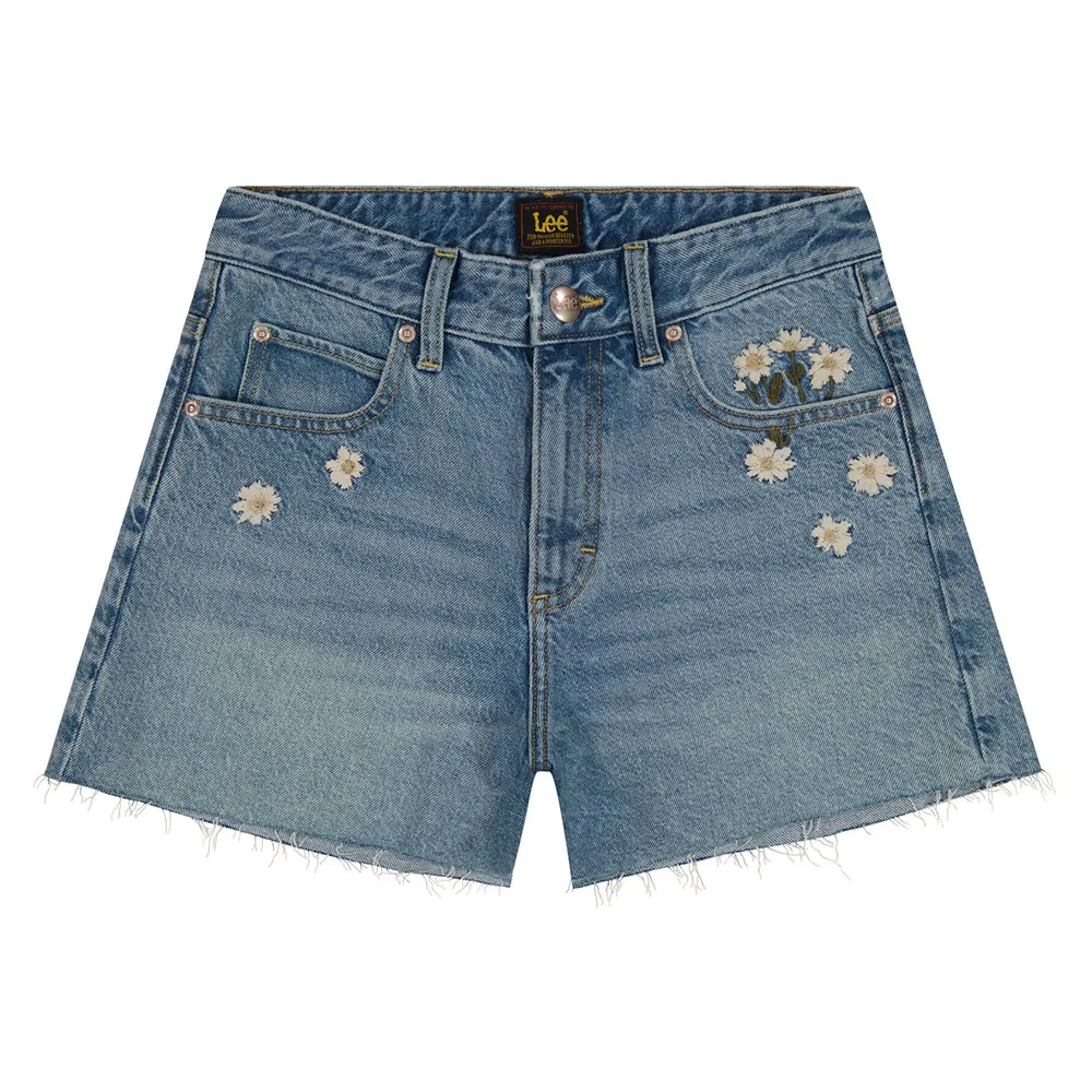 Красивая вышивка в виде ромашек украшает передние и задние карманы, придавая этим шортам летний, фестивальный вид.