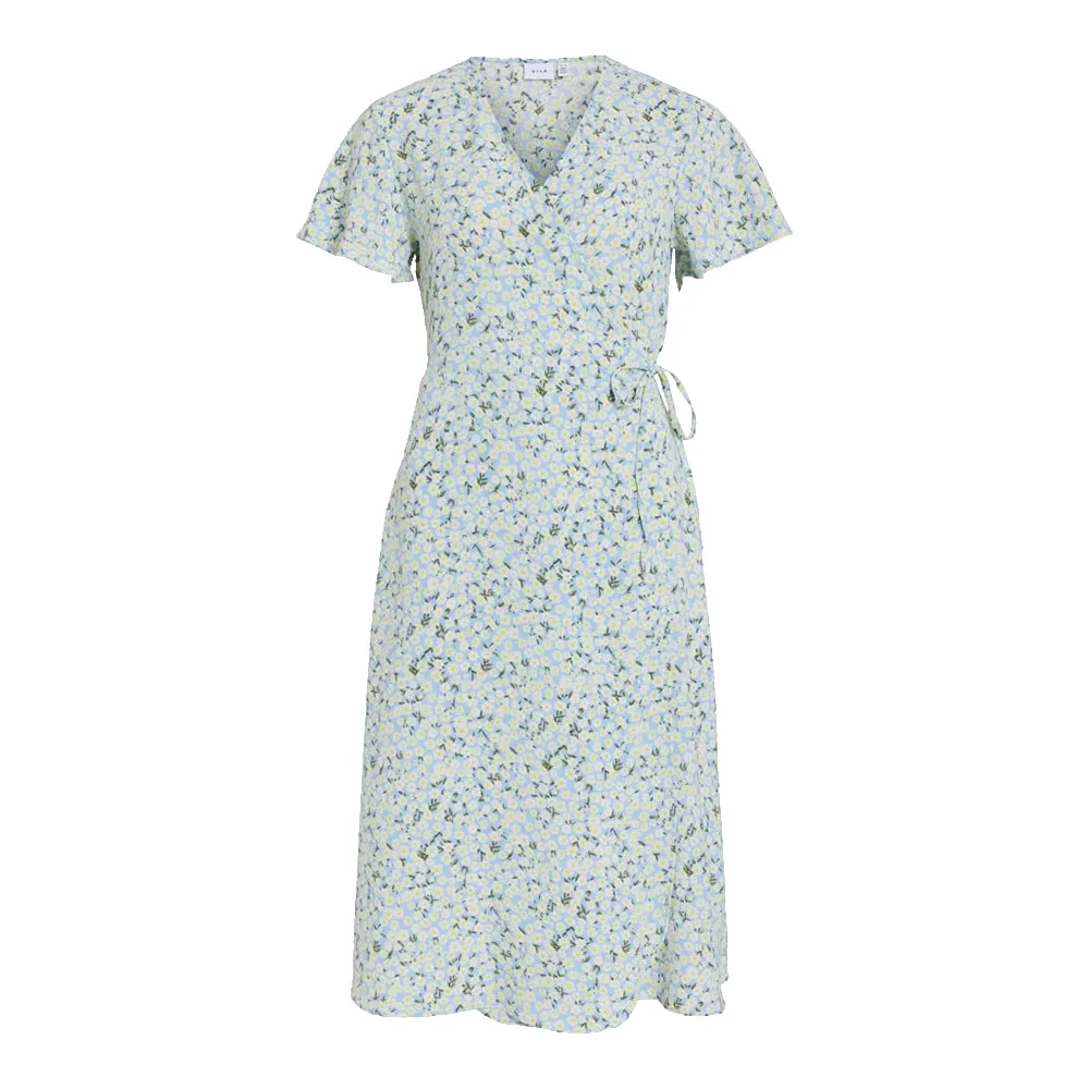 Платье Vila Lovie Wrap short sleeve midi, синий