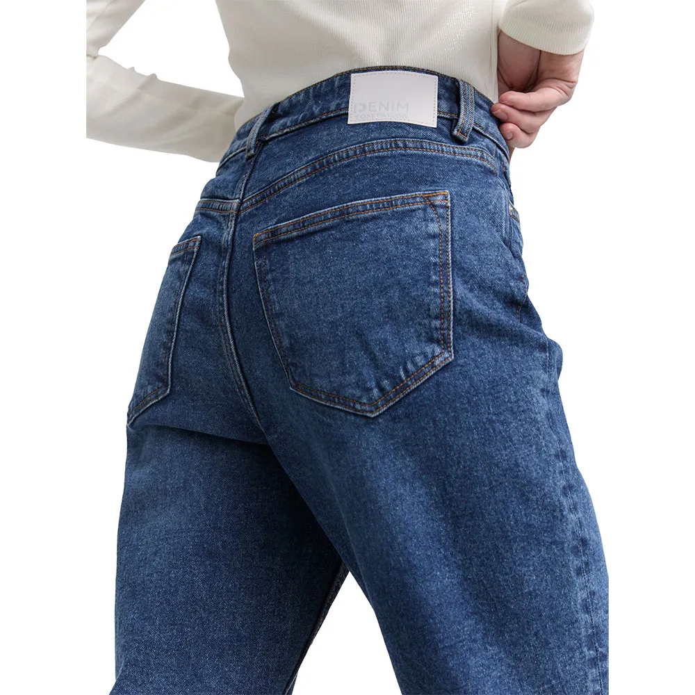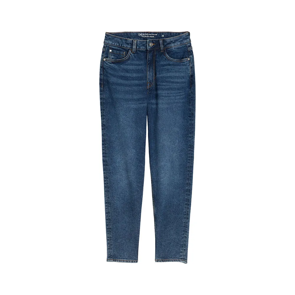 Джинсовые брюки с высокой талией, пятью карманами, прорезными карманами по бокам спереди и накладными карманами сзади.