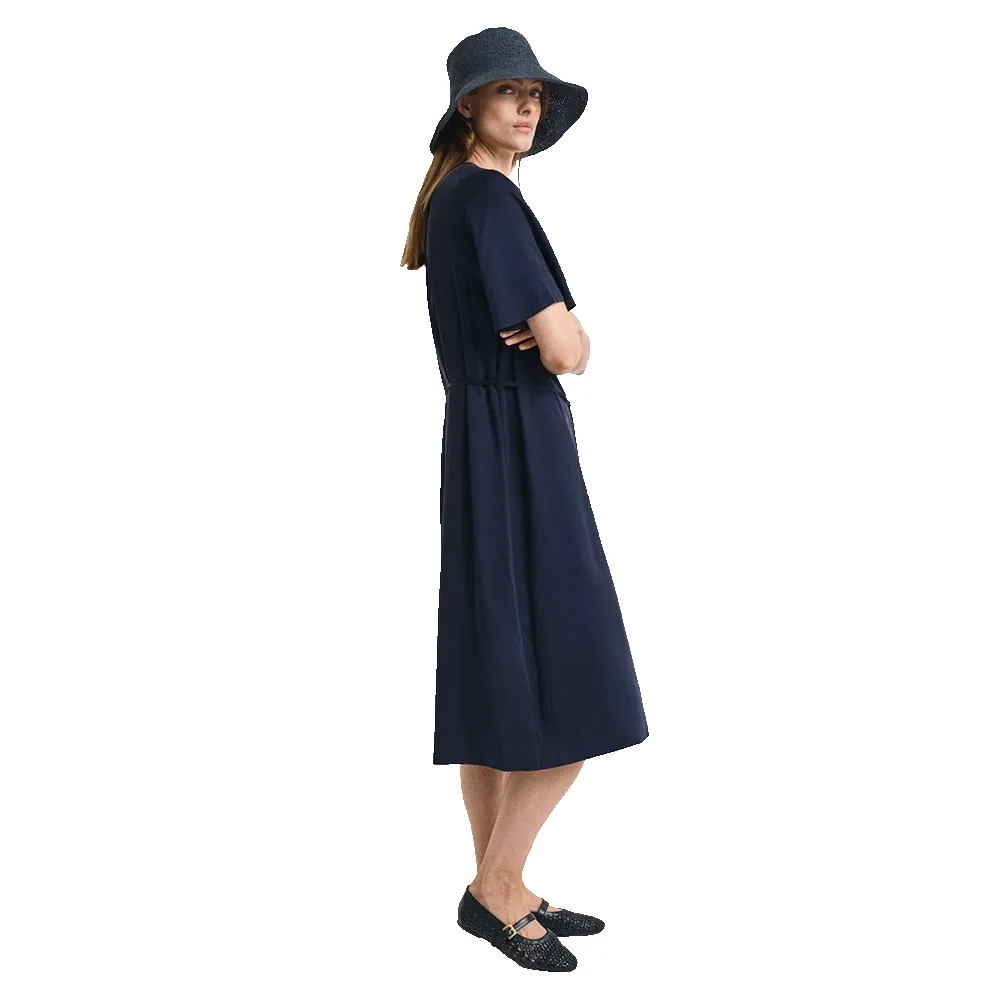 Это платье GANT, выполненное из гладкой смеси вискозы и лиоцелла, обеспечивает струящуюся драпировку и создает непринужденный летний стиль.