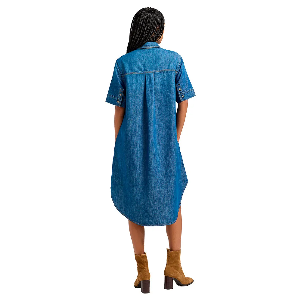 Сочетая в себе элегантный и повседневный стиль, оно сшито с короткими рукавами и застежкой на пуговицы спереди.