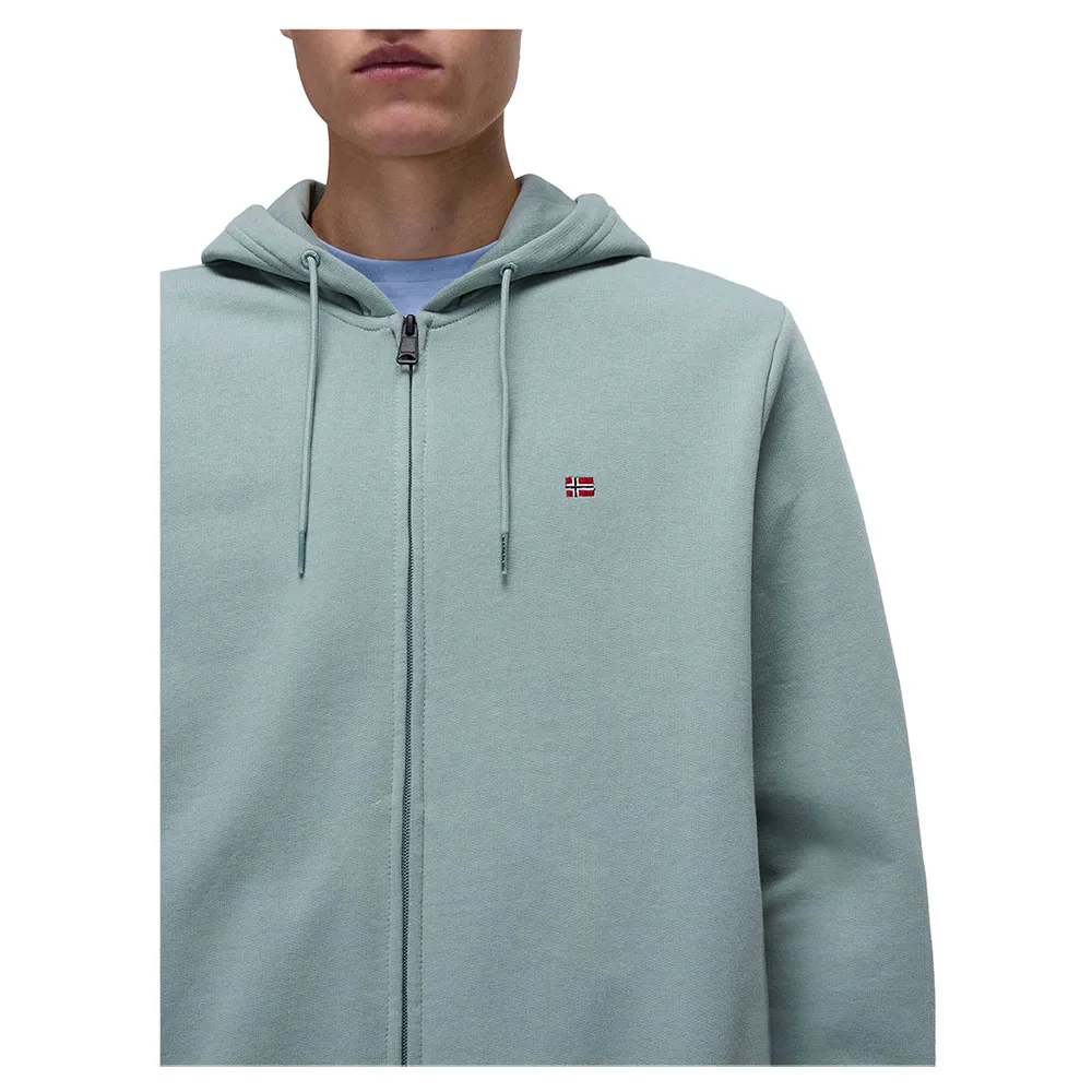 Она дополнена регулируемым капюшоном на шнурке, ребристыми отделками и фирменными деталями Napapijri на груди.