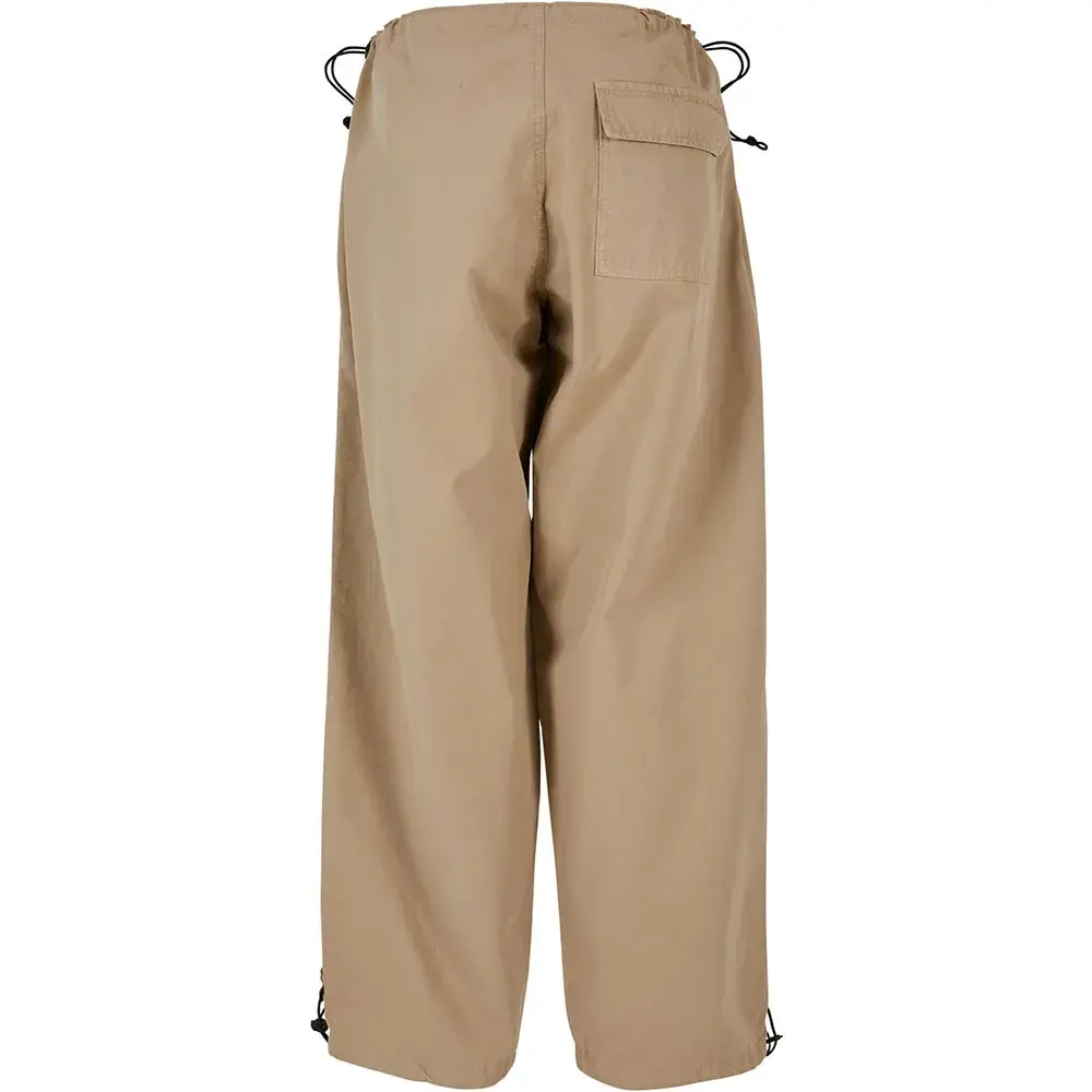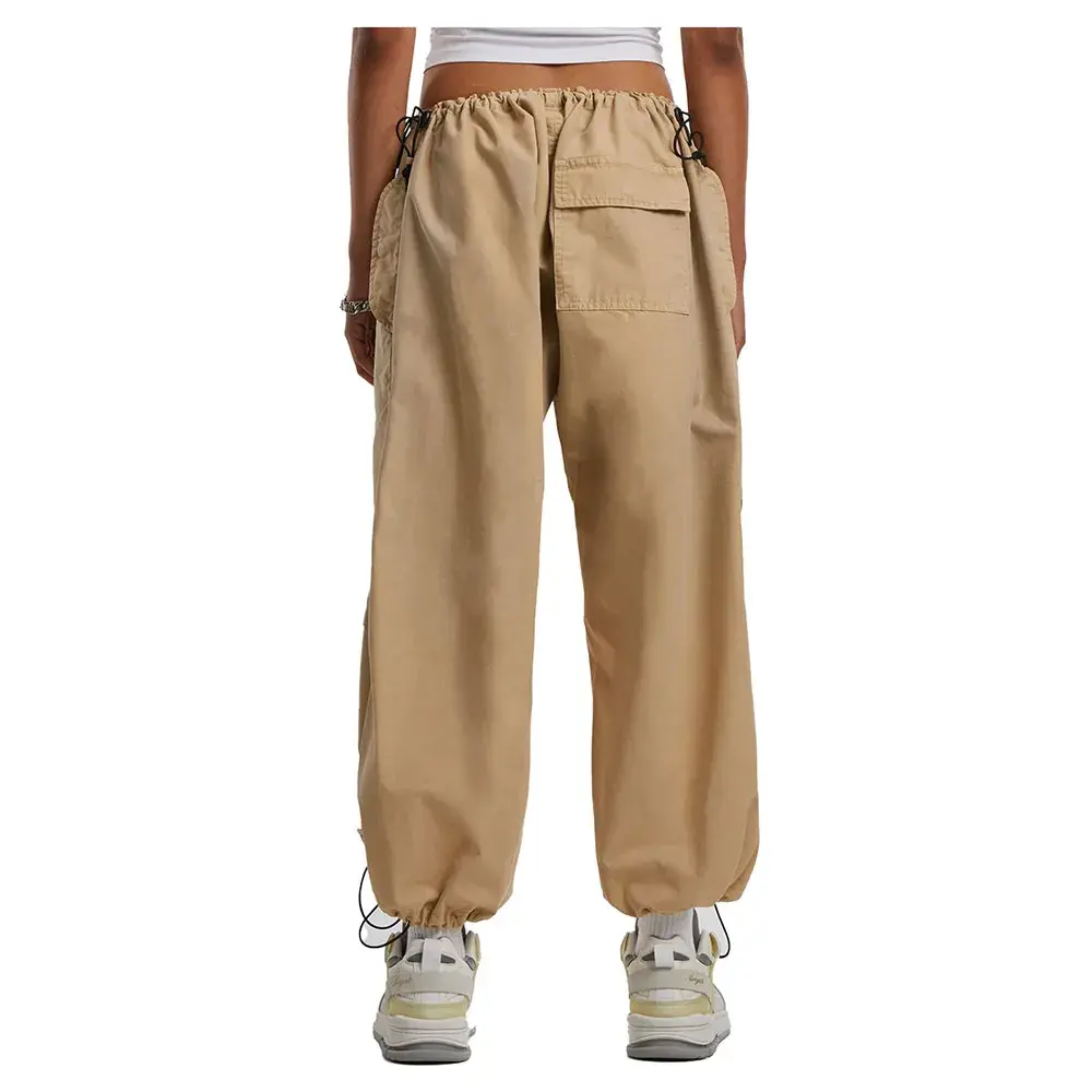 Женские парашютные брюки оснащены всем необходимым: шнурками с фиксаторами на поясе и штанинах, складками на коленях и накладным карманом с клапаном сзади. Боковые карманы дополняют спортивный и повседневный стиль. Конечно же, женские парашютные брюки также отлично сидят по фигуре. Они изготовлены из прочного хлопкового полотна.