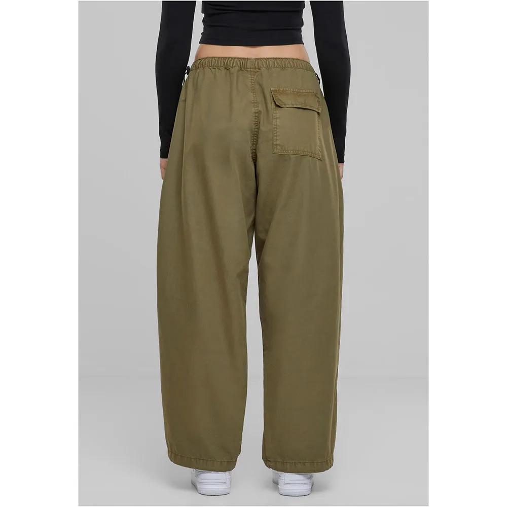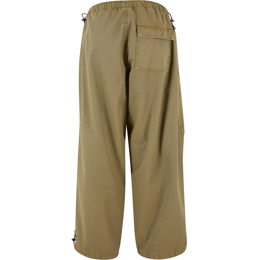 Женские парашютные брюки оснащены всем необходимым: шнурками с фиксаторами на поясе и штанинах, складками на коленях и накладным карманом с клапаном сзади. Боковые карманы дополняют спортивный и повседневный стиль. Конечно же, женские парашютные брюки также отлично сидят по фигуре. Они изготовлены из прочного хлопкового полотна.