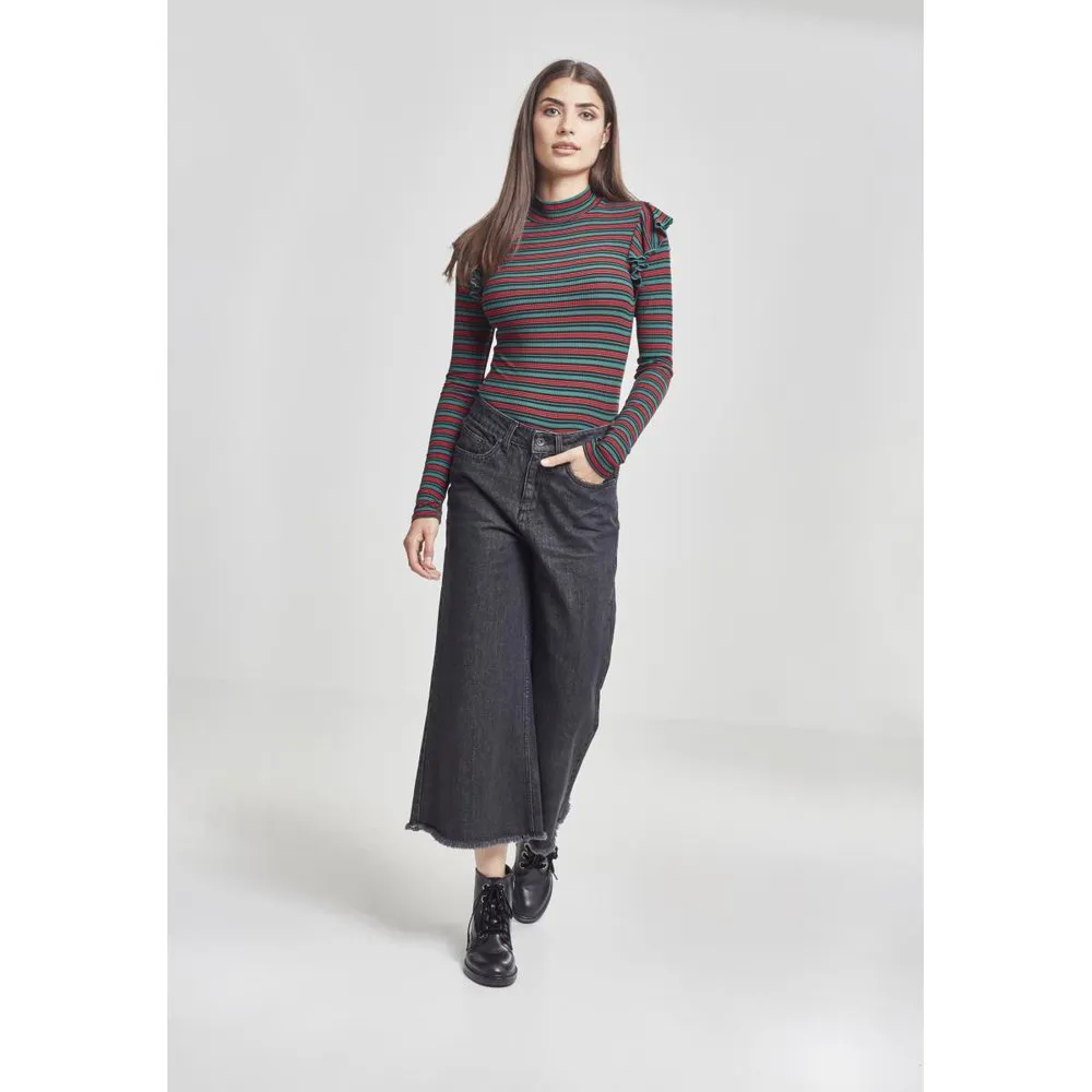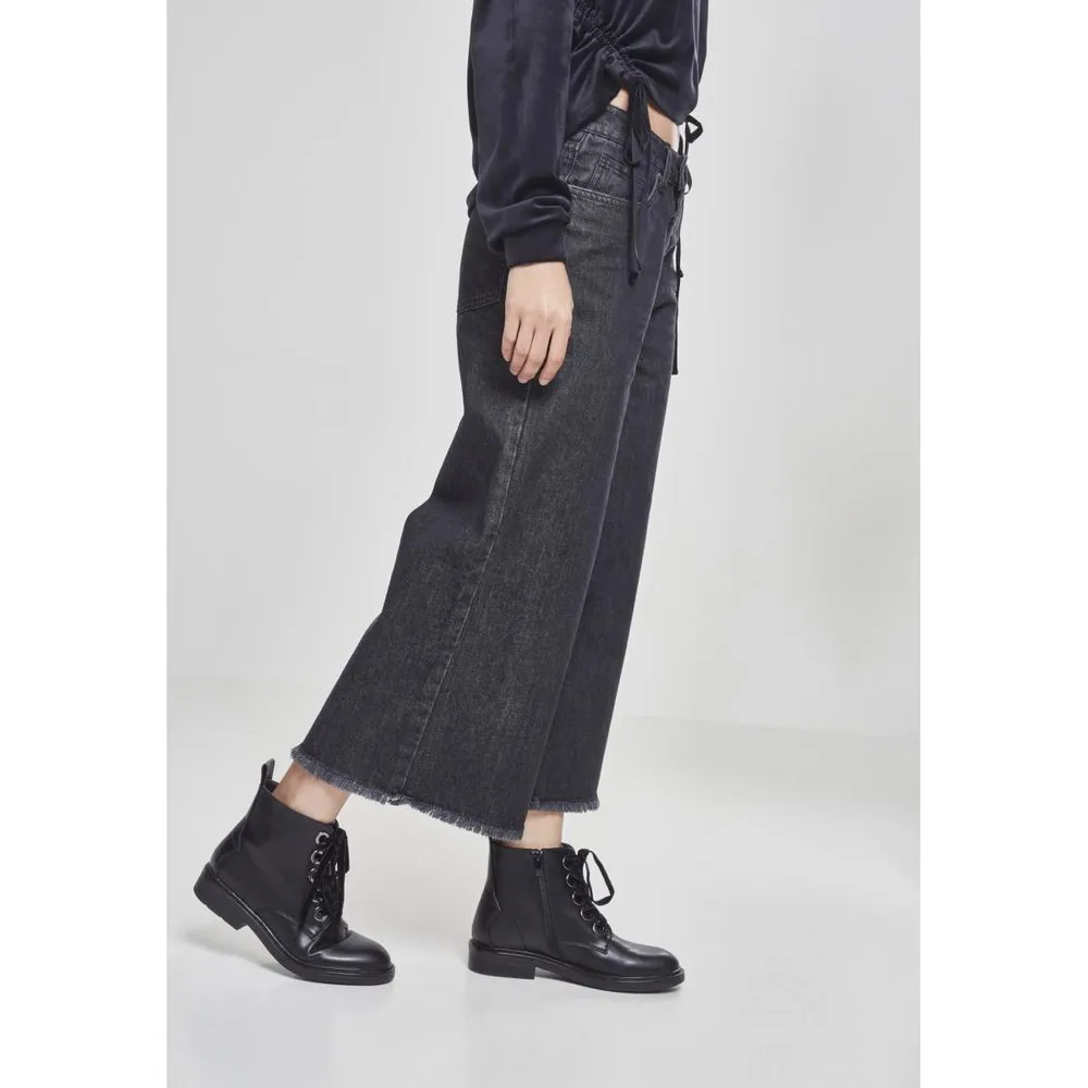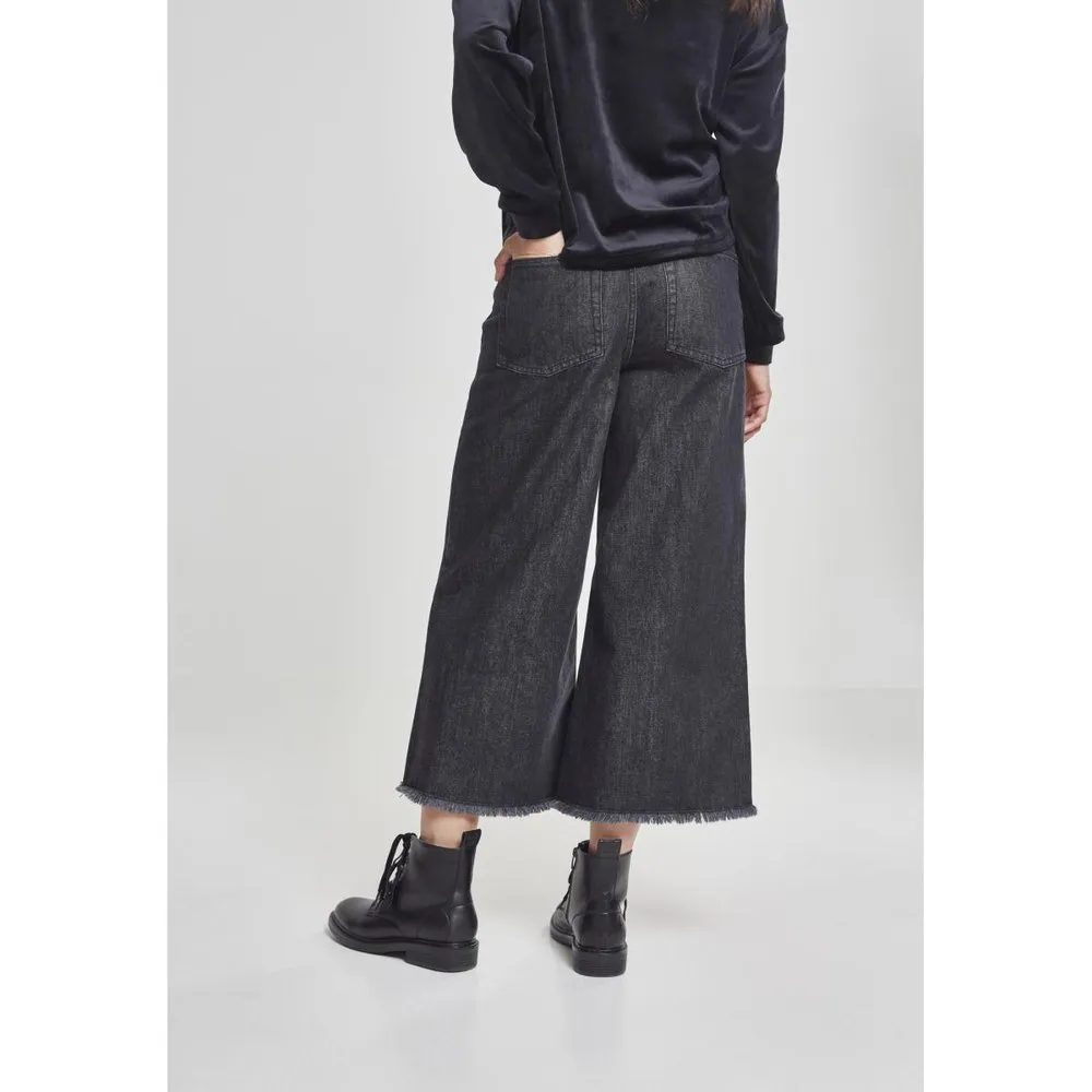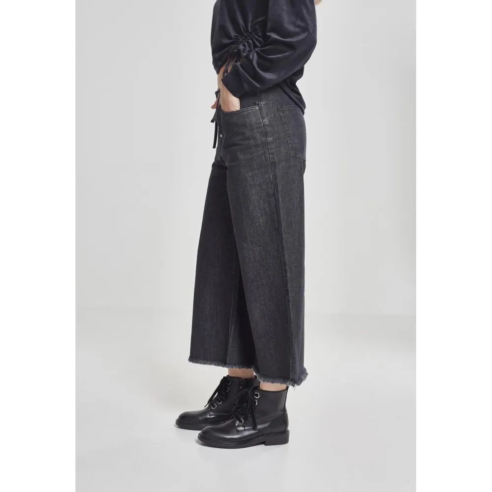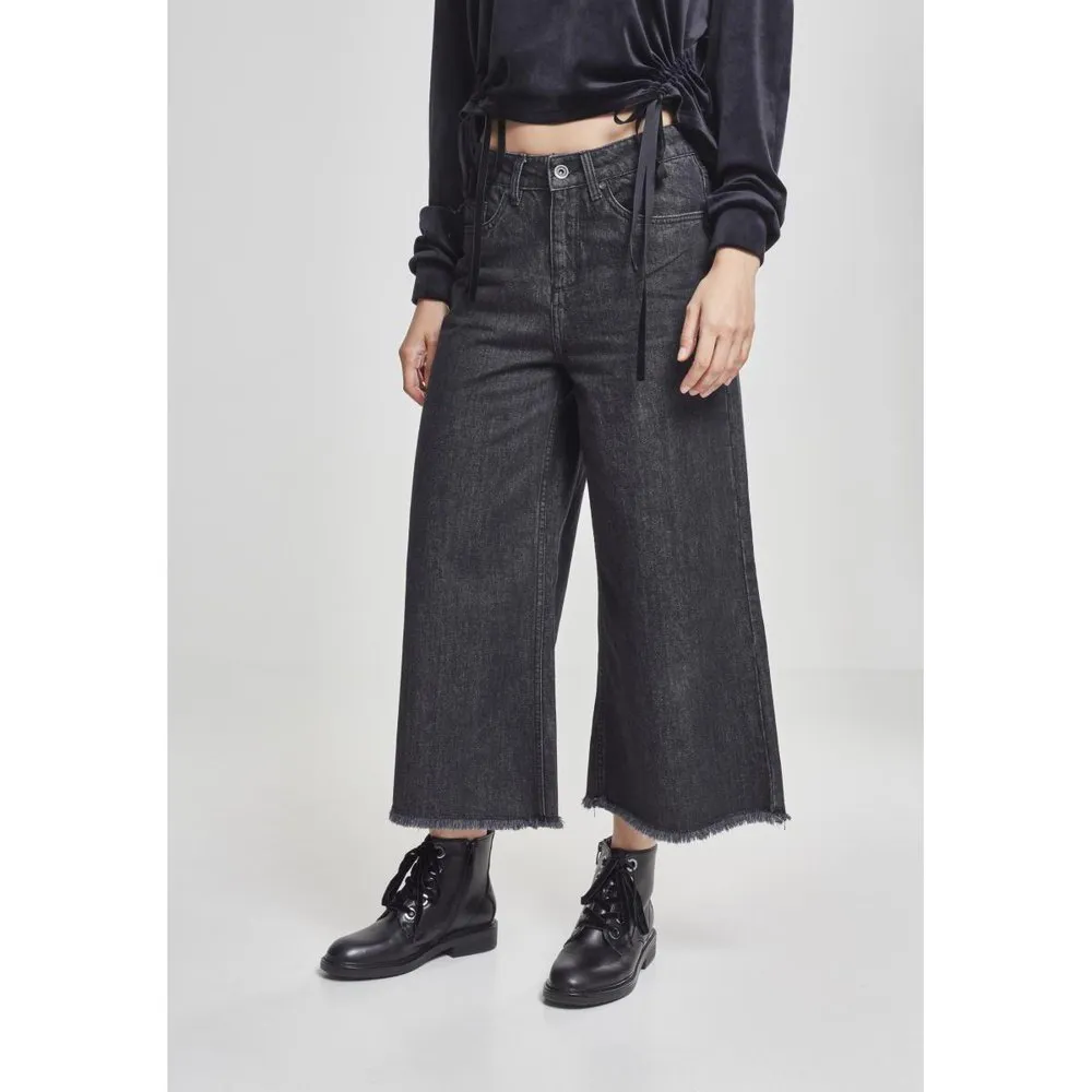Благодаря высокой талии кюлоты — модная вещь. Классический джинсовый фасон и неотстроченный край щиколотки с лёгкой бахромой — ещё одни детали. Брюки имеют классическую застёжку на молнию, два боковых и два задних кармана, а также шлёвки для ремня.