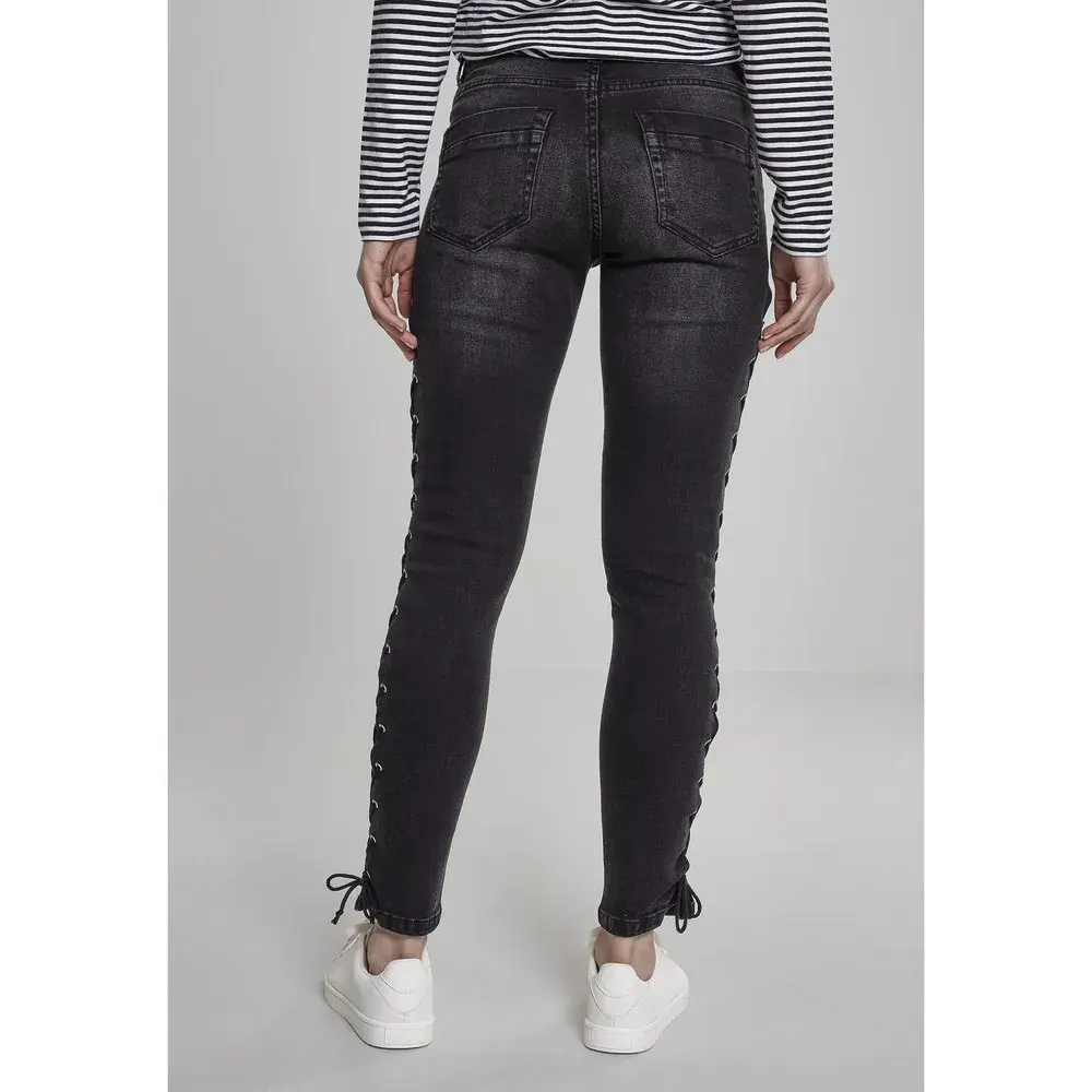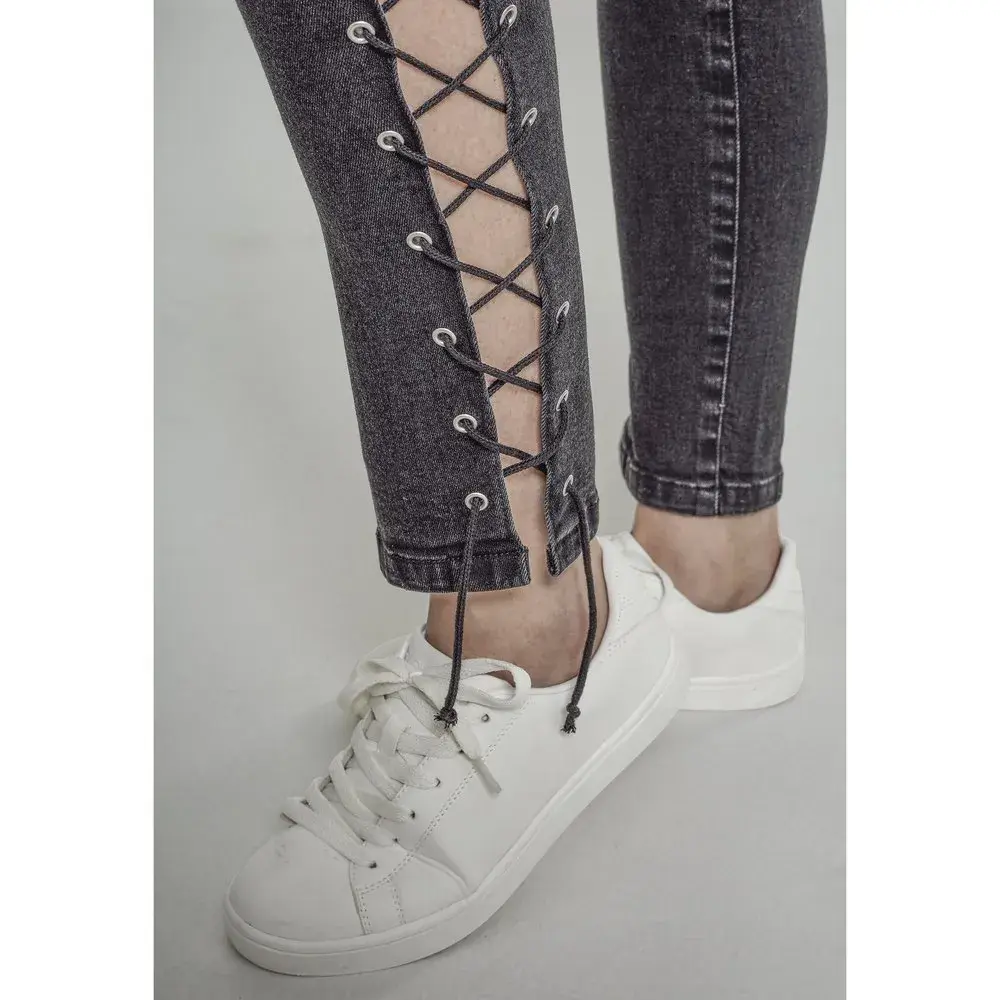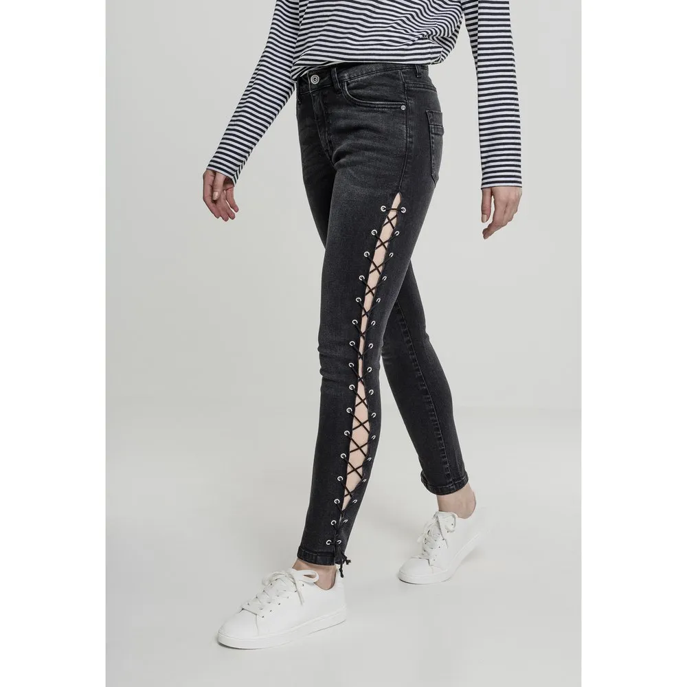 Высокая талия, облегающий и удобный крой, а также шнуровка по бокам: эти джинсы с высокой талией воплощают суть городской моды. Они добавят любому гардеробу лёгкости и стиля.