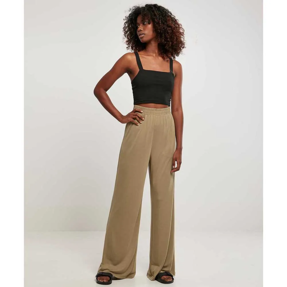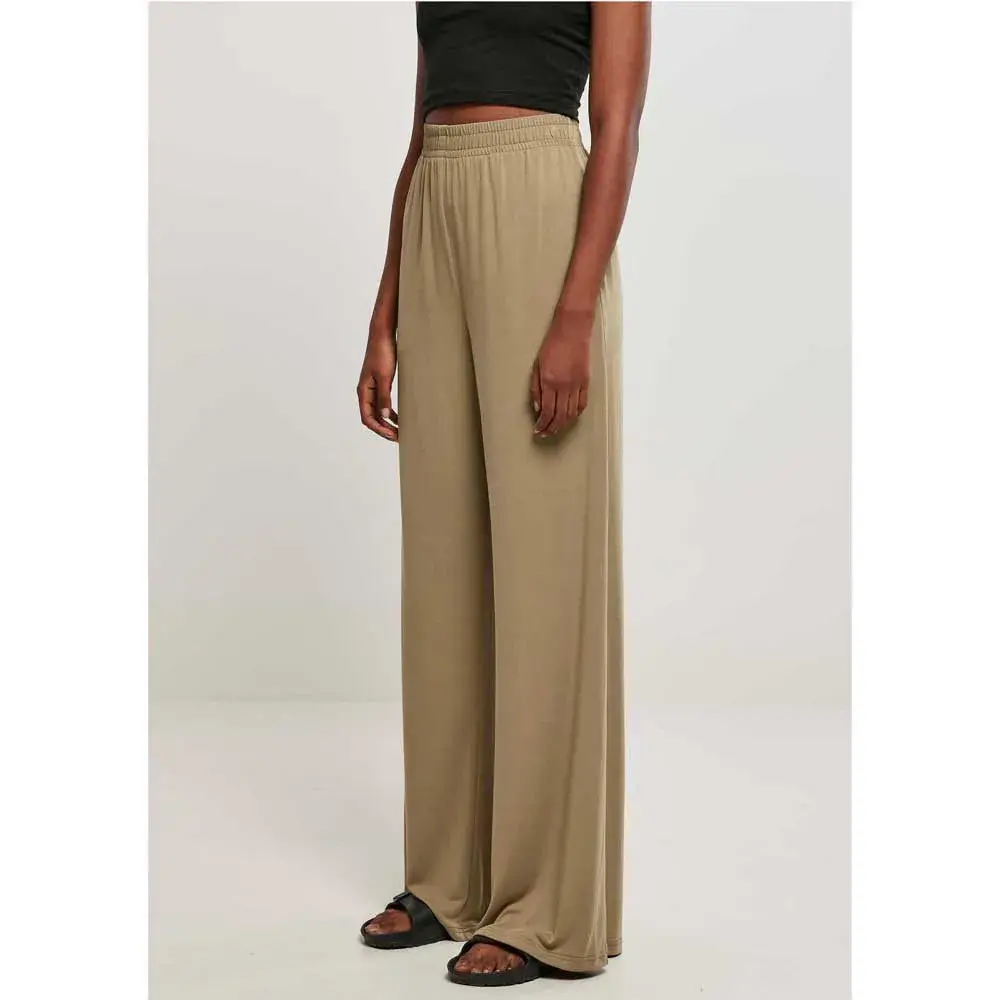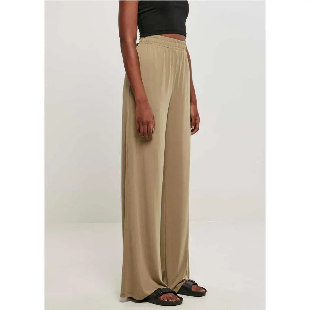 Эти женские брюки с широкими прямыми штанинами и плавным силуэтом, подчеркнутым высоким поясом, выглядят стильно и вне времени. Широкий и эластичный пояс обеспечивает максимальный комфорт. Кроме того, его можно регулировать с помощью внутренних шнурков. Женские брюки свободного кроя сшиты из гладкого модального трикотажа.
