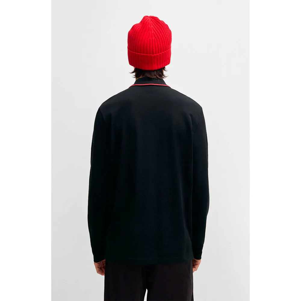 Толстовка поло с длинным рукавом / Застежка на три пуговицы / Плоский трикотажный воротник и манжеты поло / Контрастный принт логотипа Hugo на груди.