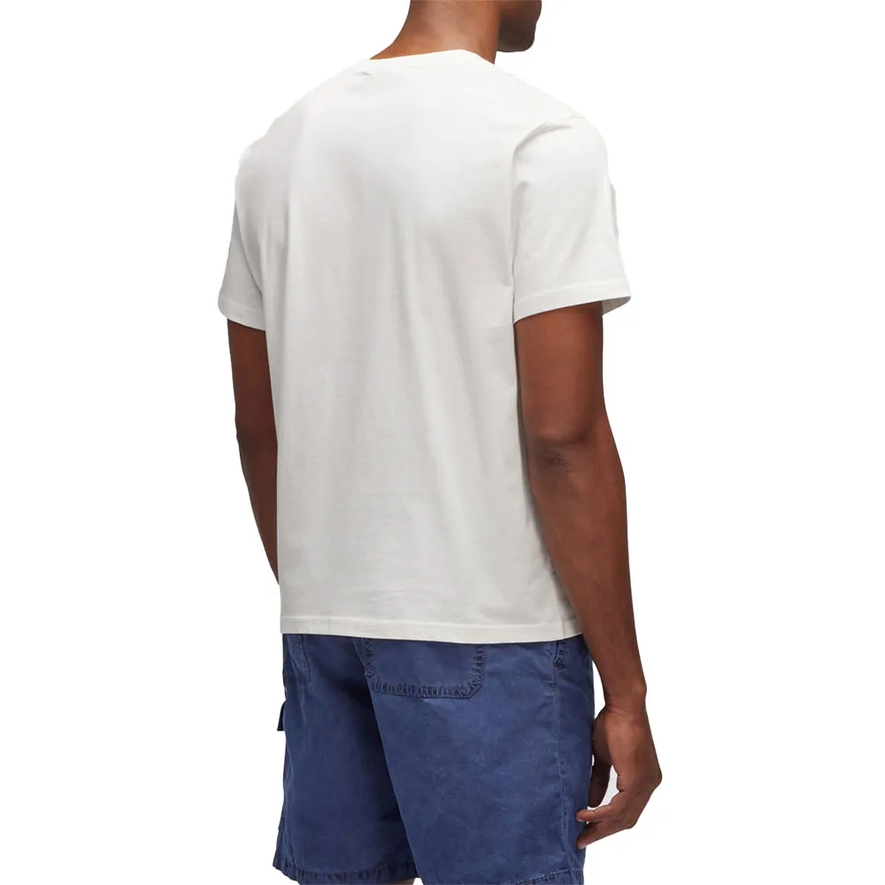 Это идеальное дополнение к вашим повседневным образам, идеальная основа под пуловеры и кардиганы. Эта повседневная мужская хлопковая футболка, украшенная крупным принтом логотипа в тон, — универсальный предмет гардероба, идеально подходящий для путешествий.