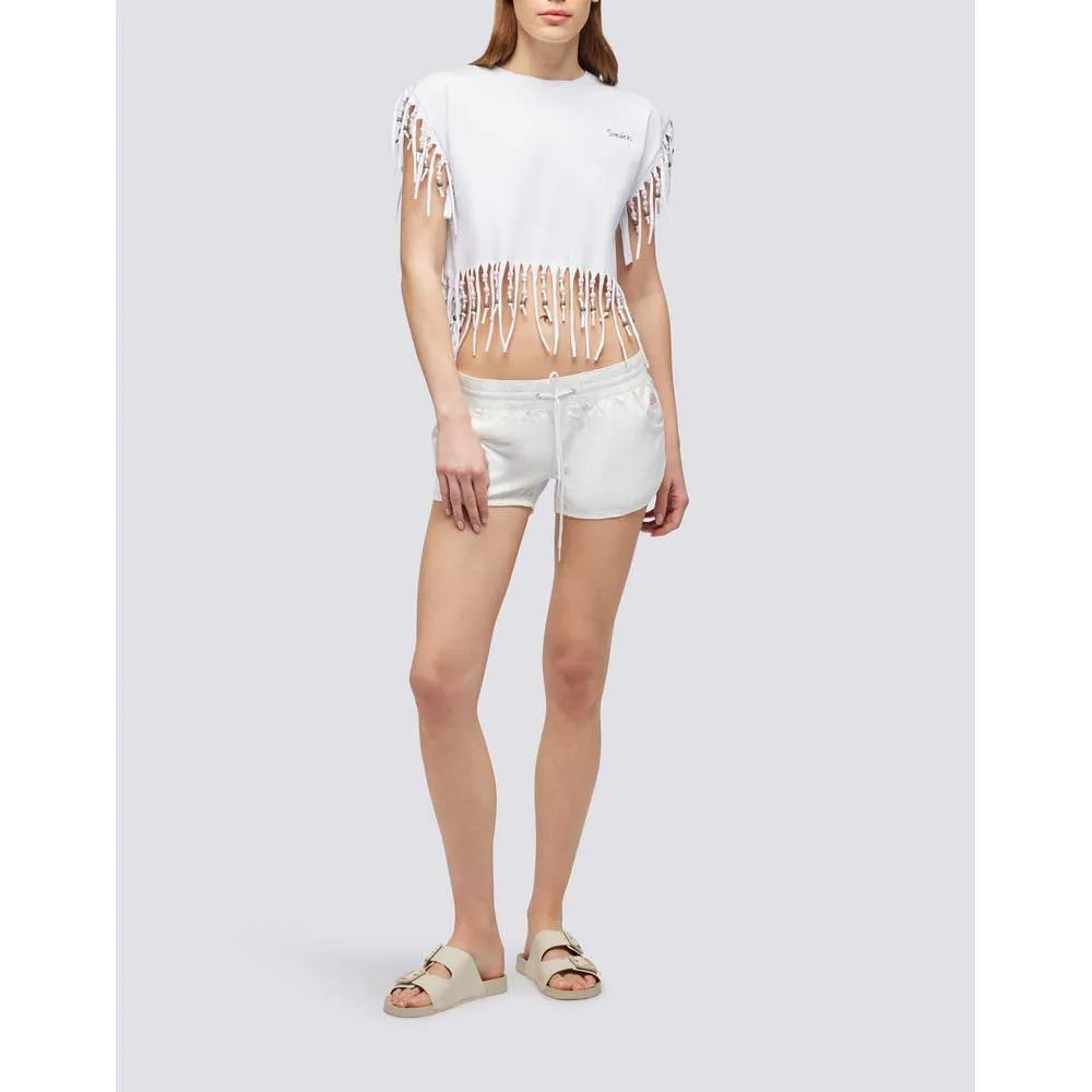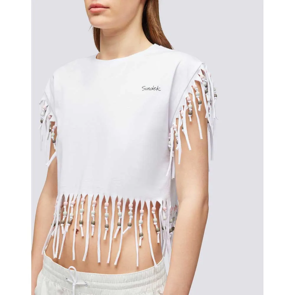 Эта женская майка с бахромой идеально подойдет тем, кто предпочитает супер-повседневный пляжный образ. Она станет идеальным выбором для летних дней.