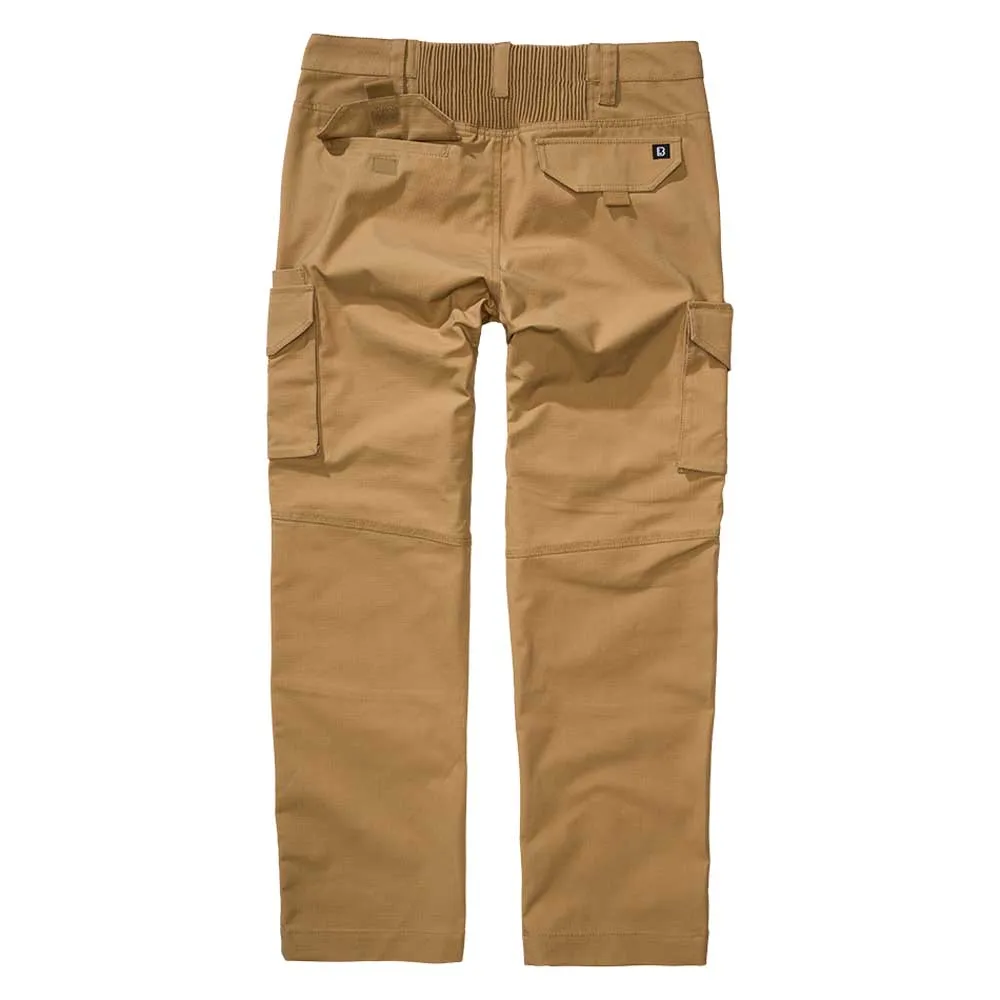 Пояс с эластичной вставкой / 2 больших прорезных кармана / 2 задних кармана с клапанами и застежкой на липучке / 2 боковых накладных кармана на штанинах с клапанами и застежкой на липучке / Двойная строчка в области колен / Прочный материал рипстоп / Удобно носить / Различные шлевки для ремня / Прямой крой / 1 шлевка для ключей.