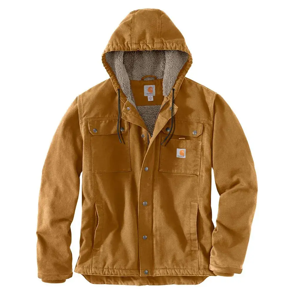 Эта мужская куртка создана для холода, ветра и суровых рабочих будней. Прочная, но не жёсткая, изготовлена из прочного хлопкового полотна. Этот теплый слой подбит мягким шерпа-флисом по телу и капюшону, а также теплым стеганым нейлоном на рукавах. Слегка свободный крой для удобной посадки, изящная форма для свободы движений.