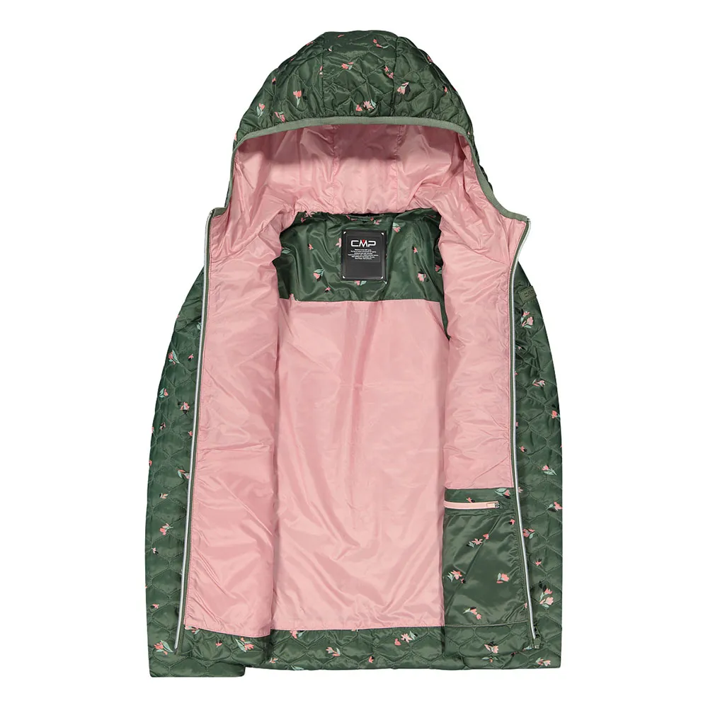 Куртка с синтетическим утеплителем Feel Warm Flat, сохраняющим тепло даже в сырую погоду, а также водоотталкивающей пропиткой без содержания PFC, обеспечивающей защиту от лёгкого дождя. Удобство использования обеспечивают передняя молния и боковые карманы на молнии. Спортивный вид с нотками дизайна, которые придают диагональная стёжка и цветочный принт. Изделие дополнено несъемным капюшоном, эластичным низом и манжетами.