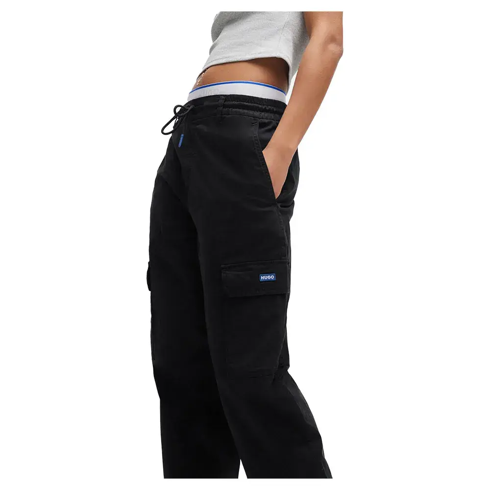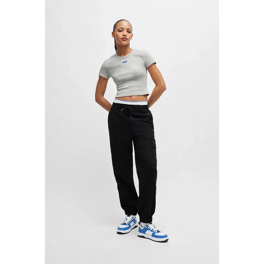 Брюки карго с манжетами от HUGO Womenswear. Эта свободная пара из эластичного хлопка имеет укороченную длину и частично эластичный пояс.