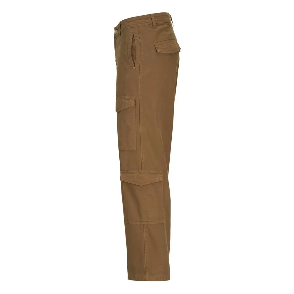 Брюки-карго, изначально разработанные для британских военных, имеют несколько карманов на ногах для дополнительной практичности.
