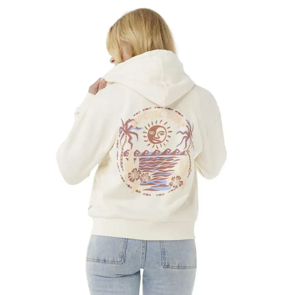 Летняя куртка с капюшоном на молнии, разработанная для прохладных дней, отличается свободным кроем и интенсивной стиркой с энзимами. Принты спереди и сзади, внутренняя сторона горловины и тканые этикетки с флагами придают ей тепло и стиль в стиле серфинга.