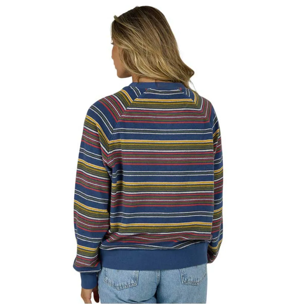 Флисовый свитер Gone Sailin Crew цвета «сливовый» – это свитер с круглым вырезом, выполненный из хлопково-полиэстерового французского трикотажа с рисунком в полоску, окрашенным в пряжу. Он имеет ребристую вязку на горловине, втачной V-образный вырез спереди, ребристые манжеты и нижний край, а также вышитый рисунок на левой стороне груди.