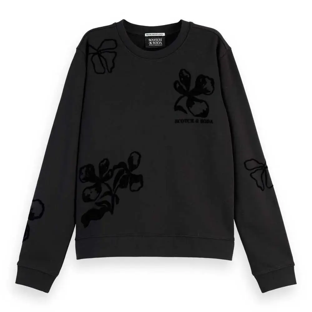 Ощутите идеальное сочетание комфорта, стиля и качественного мастерства с этой обязательной толстовкой. Внимание к деталям заметно в каждом стежке, от тщательно выполненного флокового рисунка до высококачественной хлопковой ткани. Инвестируйте в вещь, которая выдержит испытание временем и станет неотъемлемой частью вашего гардероба. Толстовка SCOTCH & SODA Flock Artwork Regular Fit создана для современной женщины, которая ценит комфорт и стиль.